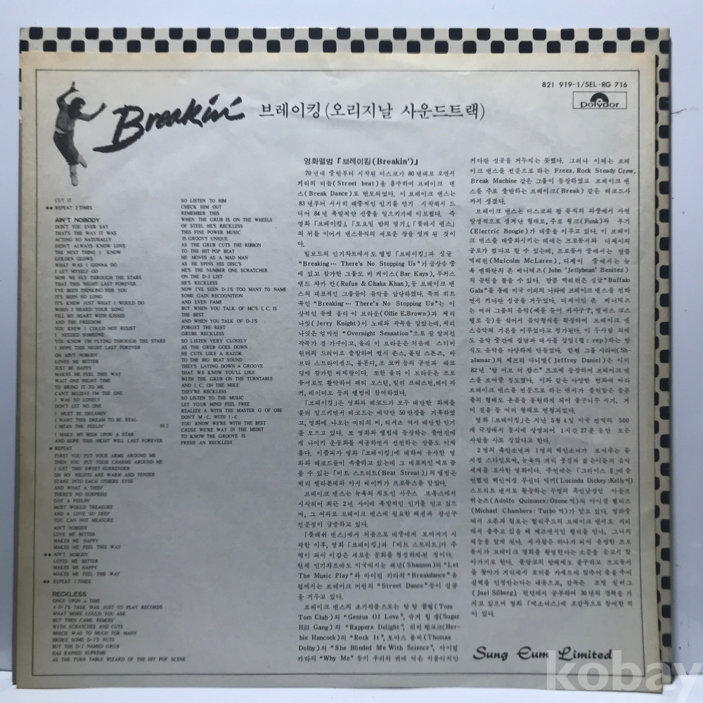LP 35,550-88 Breakin ost . ` 84 성음 자켓 EX+ 알판 EX