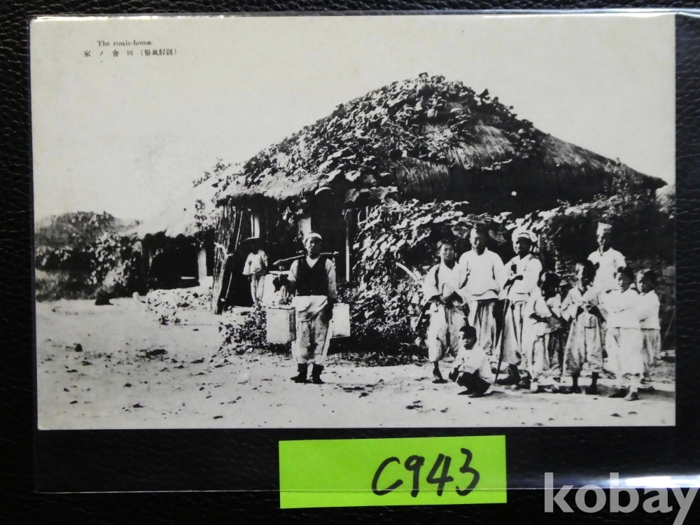 ▣한국근대엽서(진본): 시골의 농가 앞에 있는 조선인들/1매/역사자료, 일제시대, 일제강점기 사진엽서,그림엽서,회엽서. C943