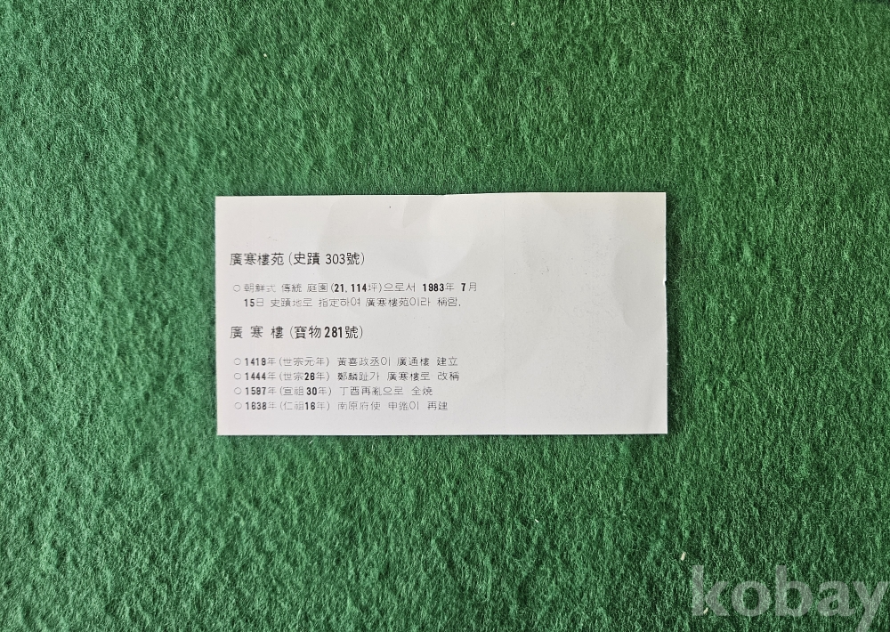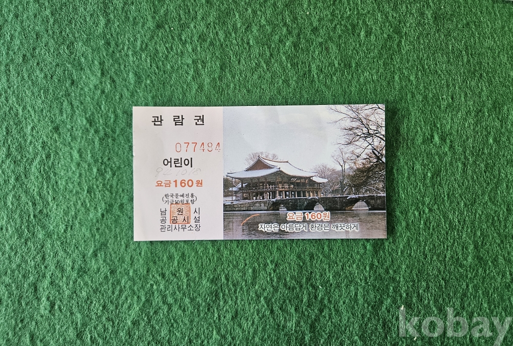 - 광한루 관람권 1 매 (어린이 요금 160원 )