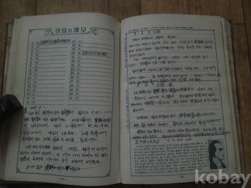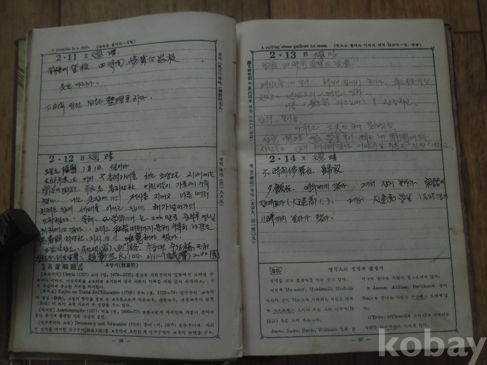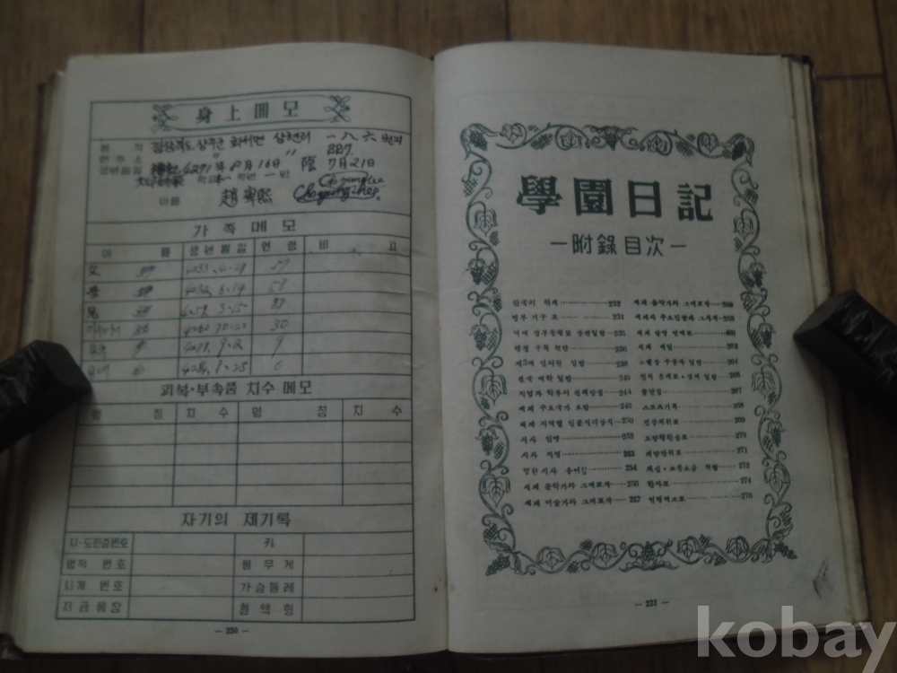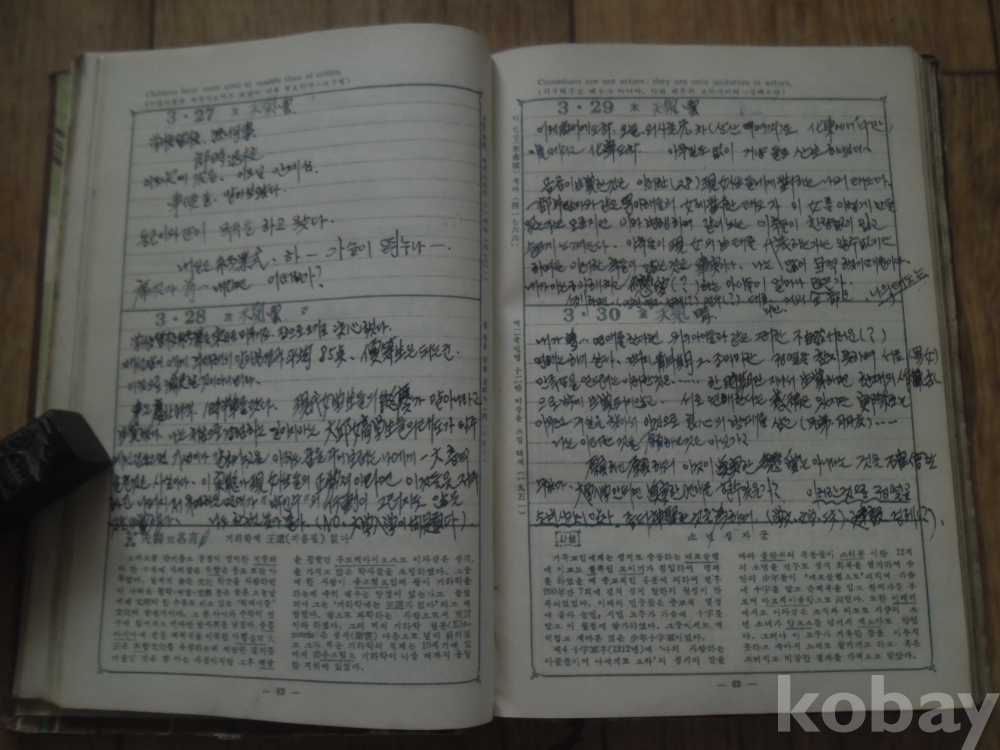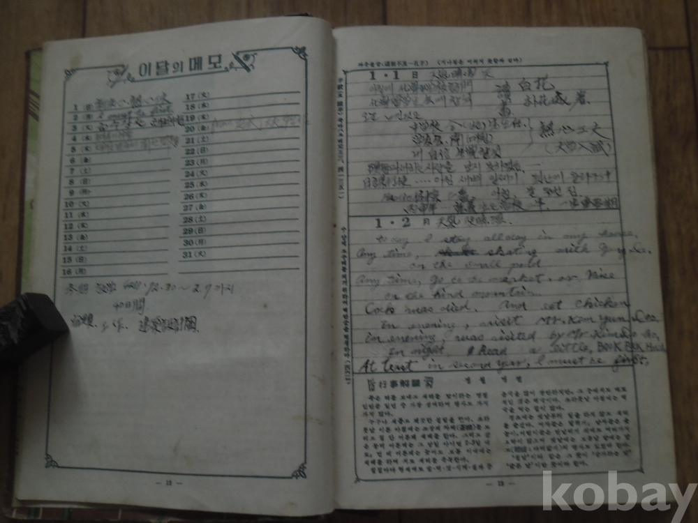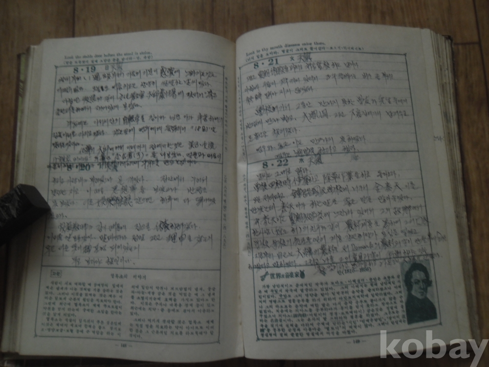 일년 거의 매일의 학창시절의 일상을 깨끗한 필체로 기록.