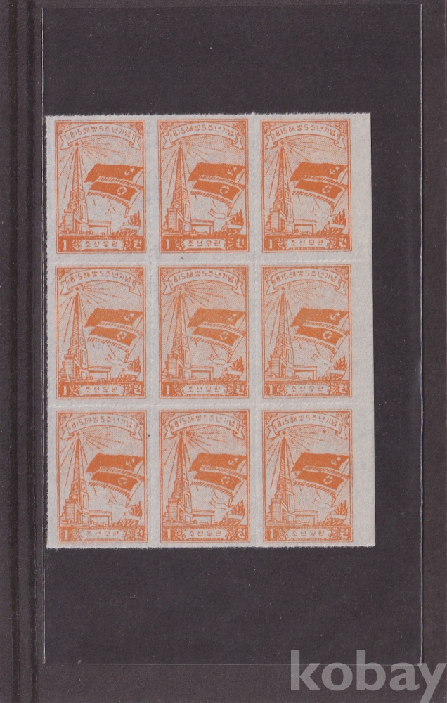 [윗동네 미사용 우표 모음展] - 8.15해방 5주년 기념 기념비 1원(9장) 블럭