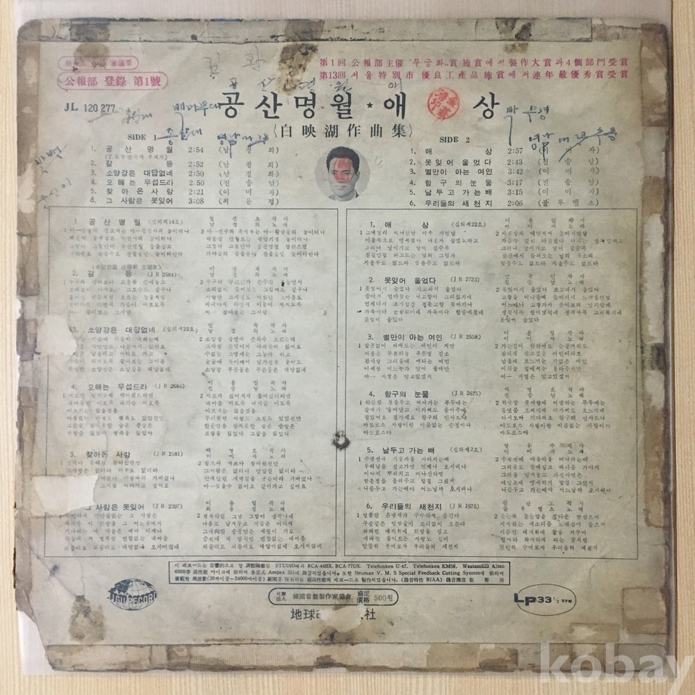 . 가요음반 대부분은 휘어짐이나 손상을 방지하기 위해 무지싱글자킷을 하나 더 사용하여 보관되었던 음반들입니다.