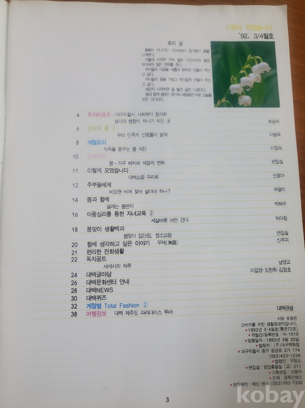 1. 대백 통권 72호, 대구백화점, 1992년, 39쪽, 격월간, 비매품, 상태 상, 사진 참조