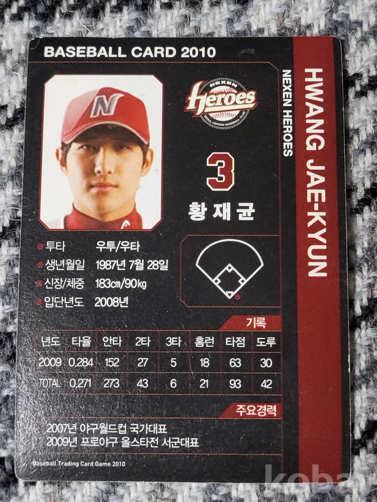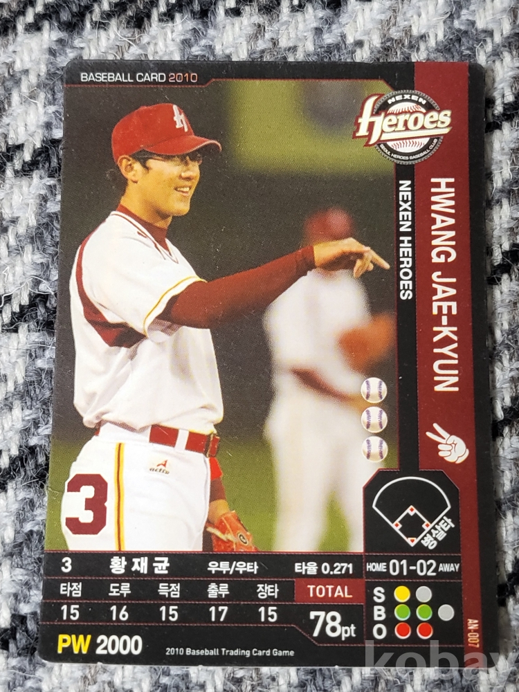 KBO가 공식카드를 발매하지 않던 2010년 해적판으로 발행되었던 희귀 프로야구 트레이딩카드 입니다.