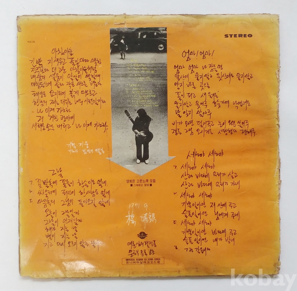 | 자켓상태 | EX : 약간의 마모, 모서리 찢김 존재 | 음반상태 | EX : 재생에 영향 없는 가벼운 기스 존재 | 발매정보 | 알수없음 | 가사지여부 | 무 |