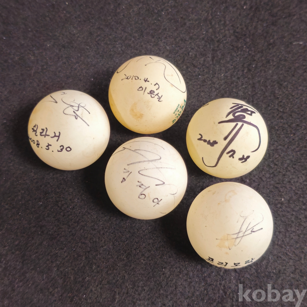 (((탁구자료))) 오래전 탁구선수 이은실/김경이등 친필싸인 5종 탁구공