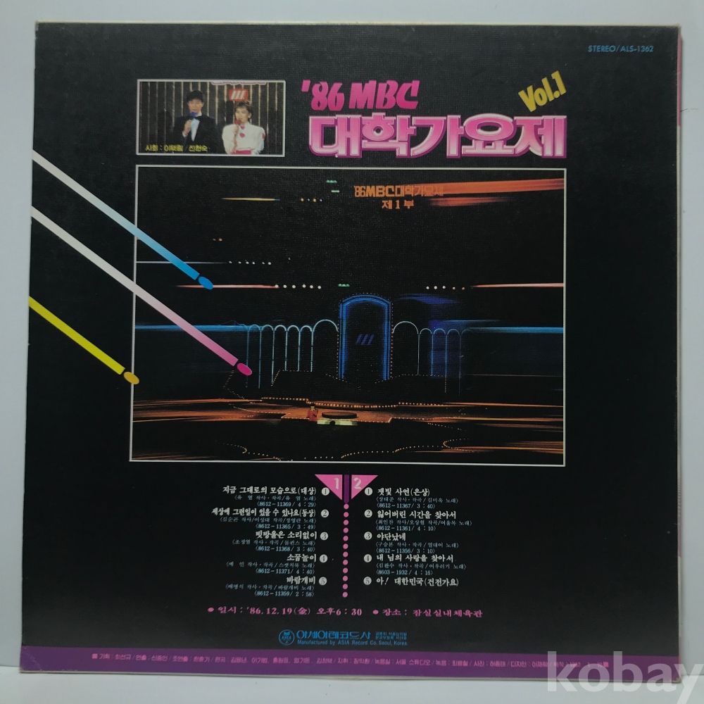 LP 35,250-29 86 대학가요제 1집 . ` 86 아세아 자켓 EX+ 알판 EX