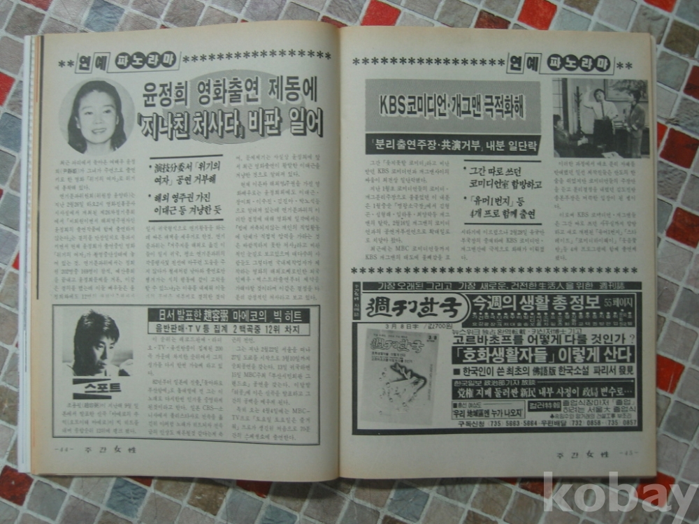 1987년 주간여성 잡지 - 표지모델 탤랜트 김도연 -