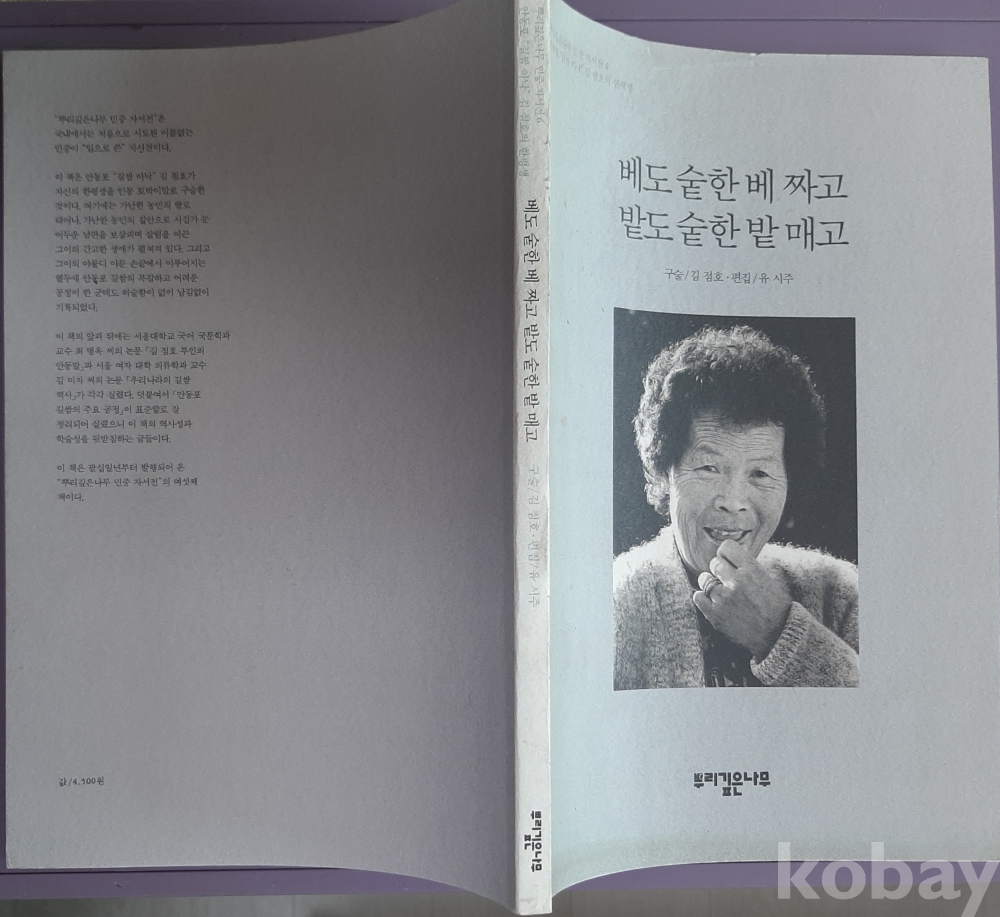 민중자서전6 안동포“길쌈 아낙” 김정호의 한평생(베도 숱한 베 짜고 밭도 숱한 밭 매고)-1991년3판 뿌리깊은나무 발행