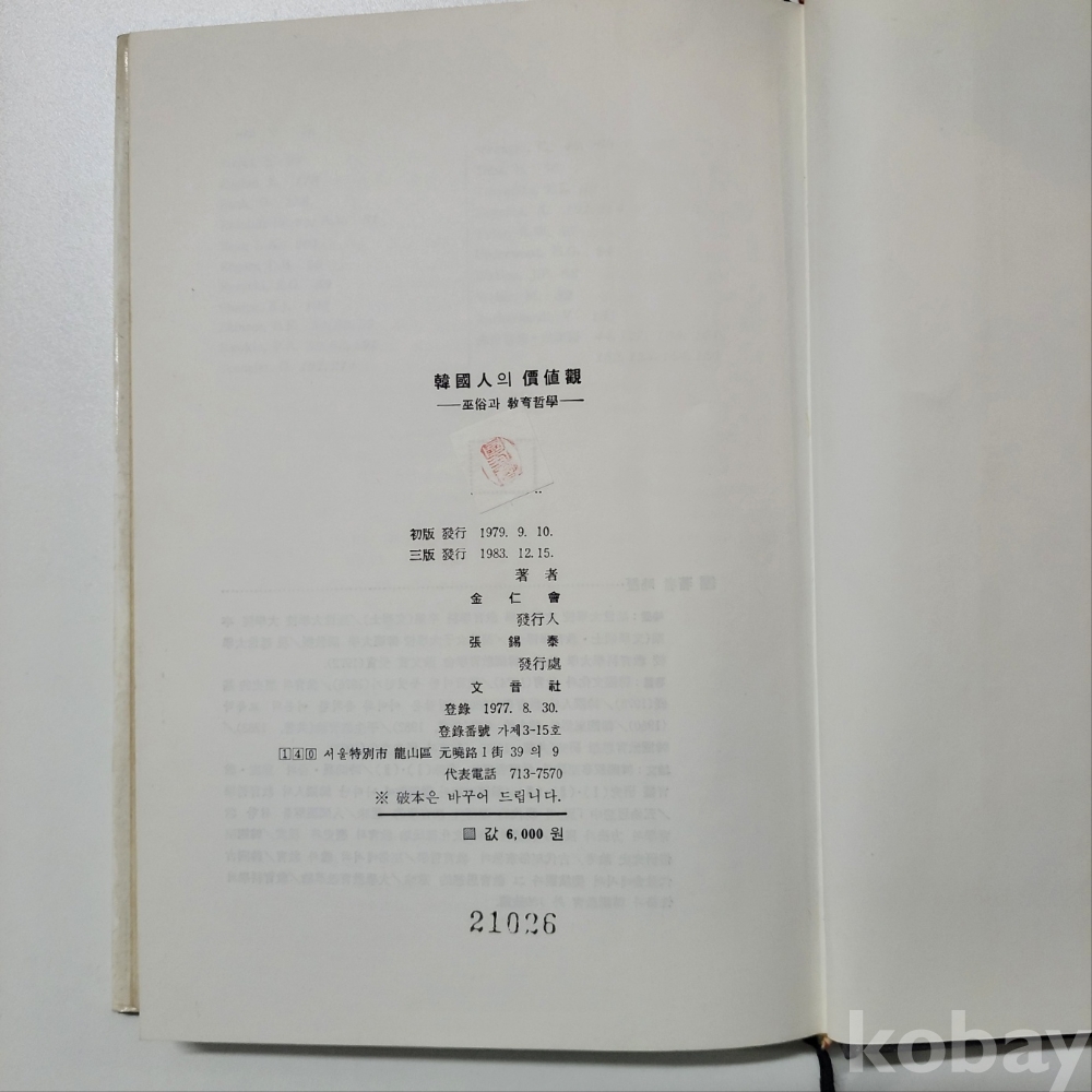 [희귀본] 한국인의 가치관 /문음사 83년 발행 ; 중급/소E08