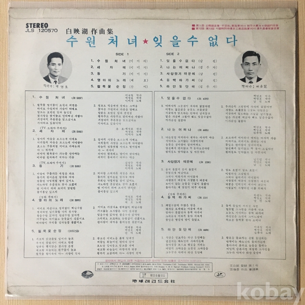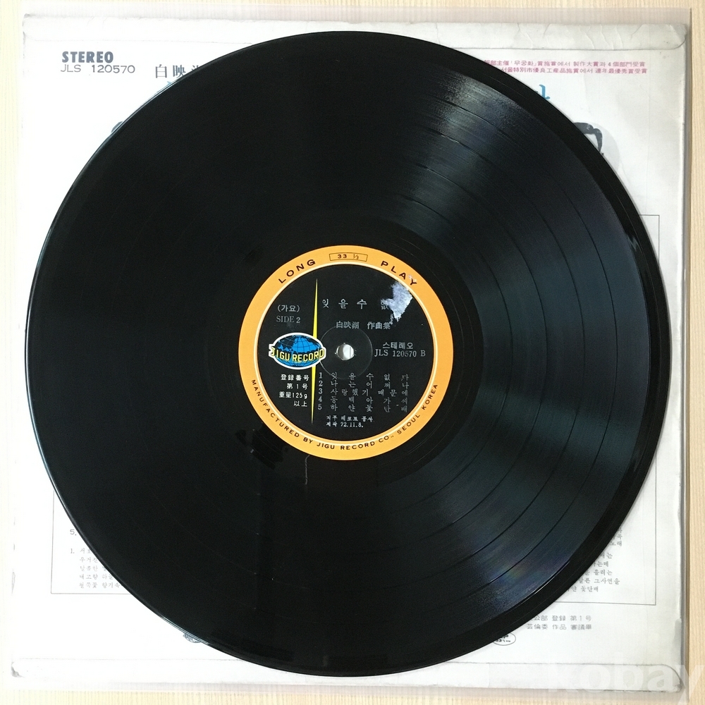 . 가요음반 대부분은 휘어짐이나 손상을 방지하기 위해 무지싱글자킷을 하나 더 사용하여 보관되었던 음반들입니다.