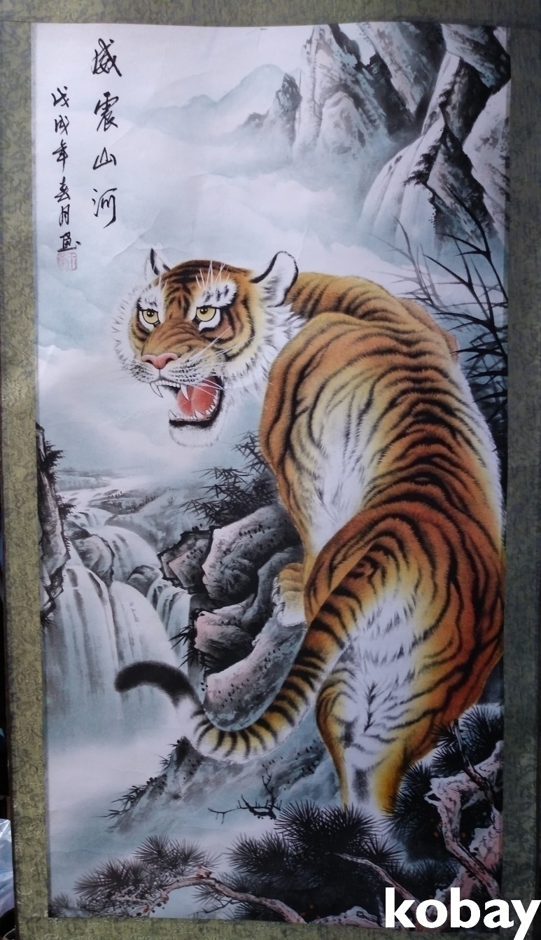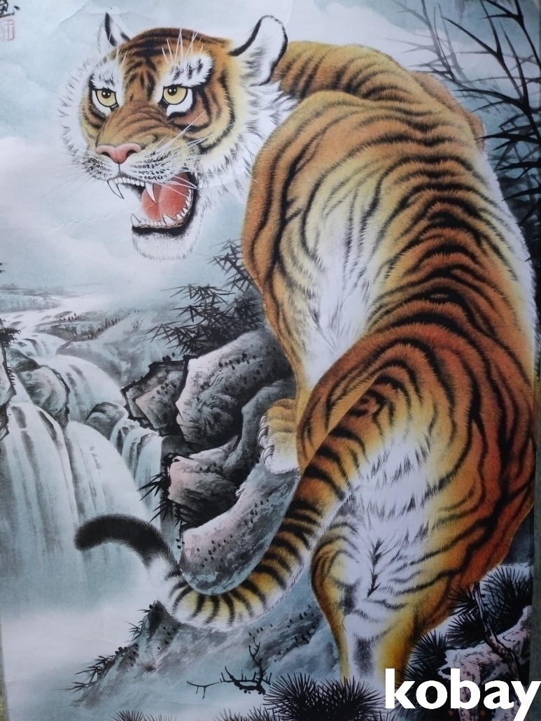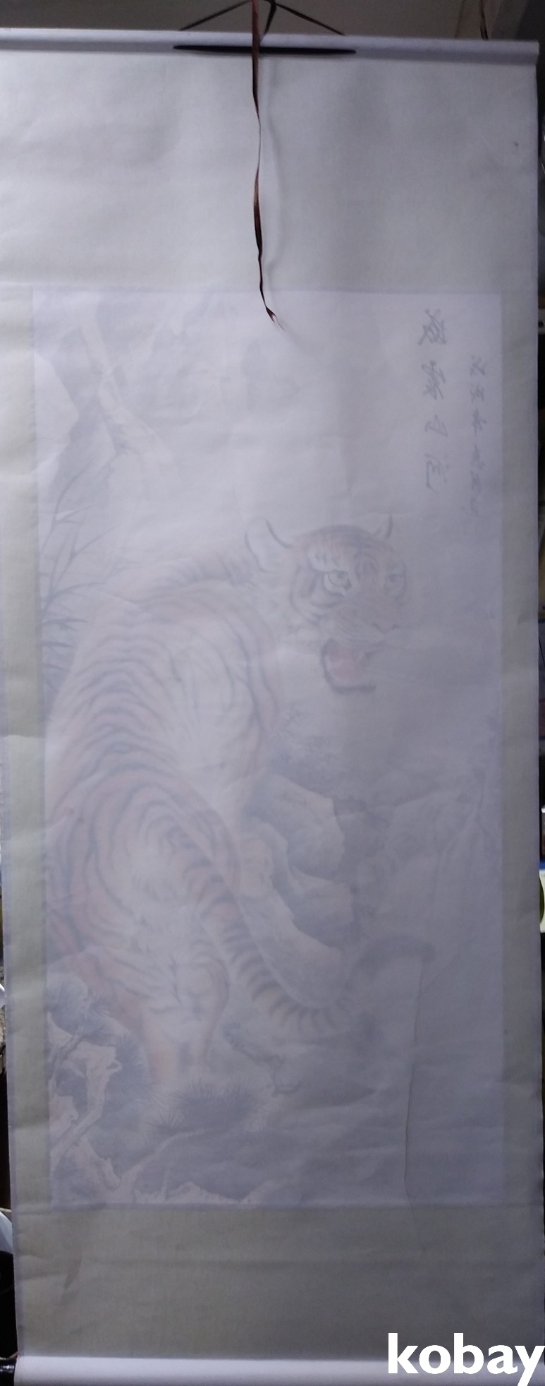 호랑이의 모습을 섬세히 표현한 그림 족자 입니다.