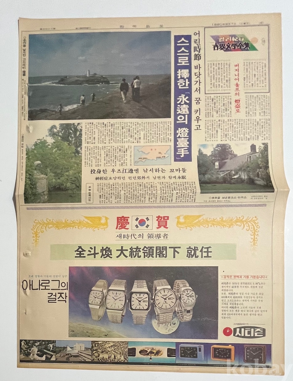 시티즌 시계 광고가 실린 한국일보 낱장입니다.