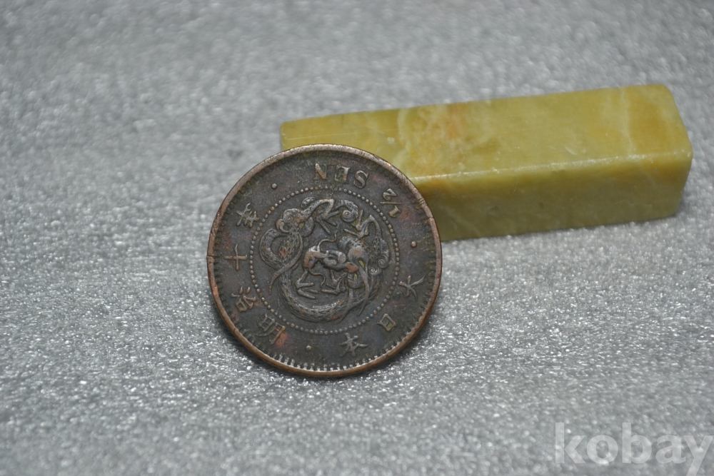 " 귀한 명치10년 ".. " 용 반전 청동화 ".. 100년 넘는 오래된 명치10년도(1877년) 일본 용반전 청동화 / 도안문양 좋은 보존상태
