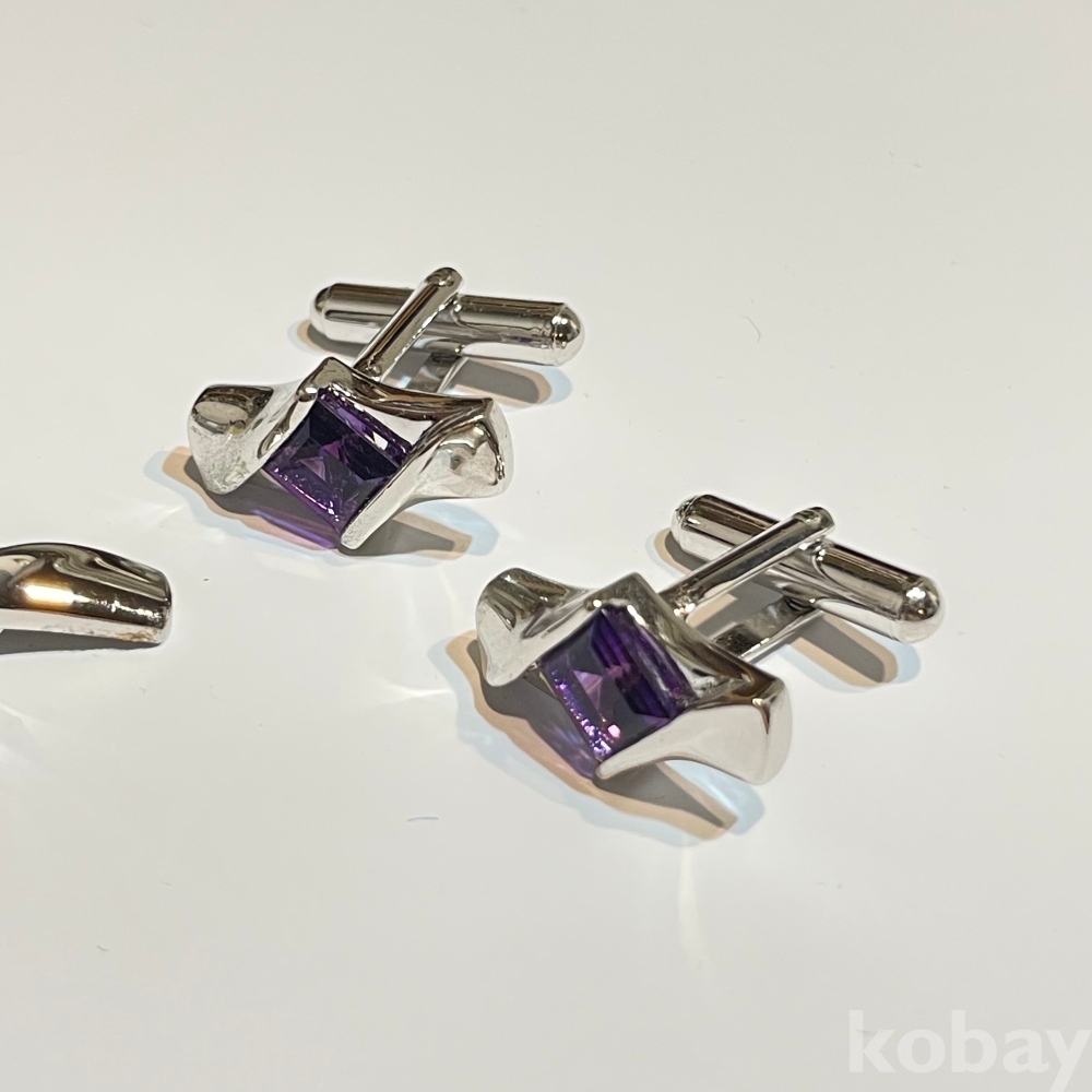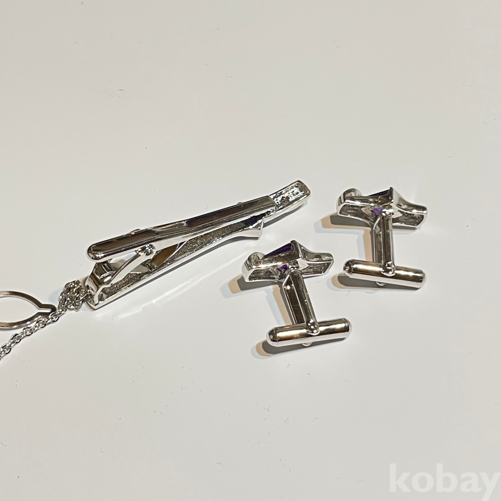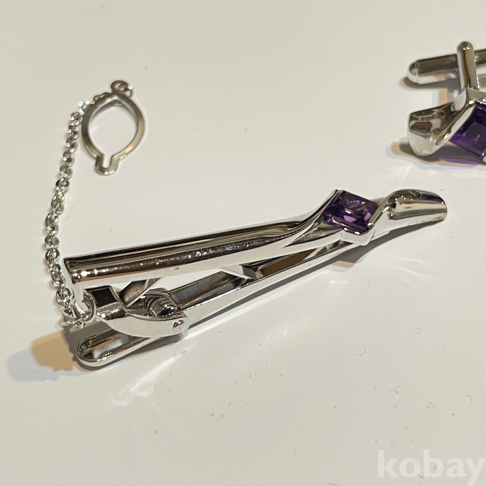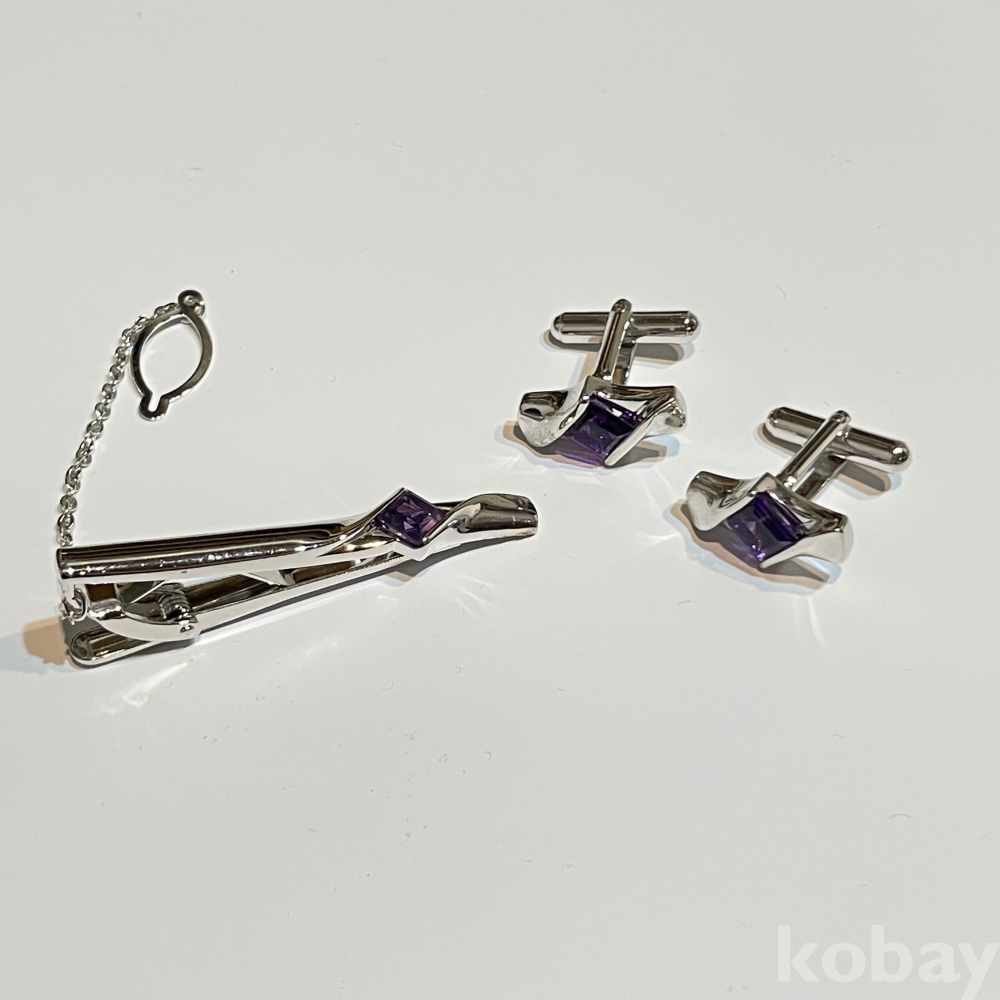 퍼플 크리스탈 커프스버튼/ 넥타이핀 세트