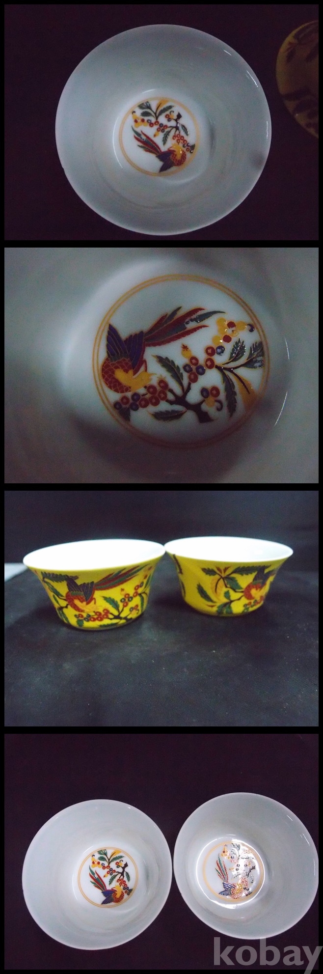 e-56.입체감이있는 금채대명성화년제 화조문배1쌍