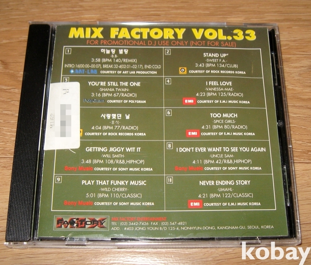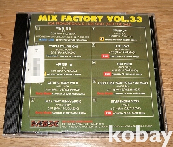 믹스팩토리 VOL.33 CD ( DJ USE ONLY ) 클럽 디제이 음반 비매품