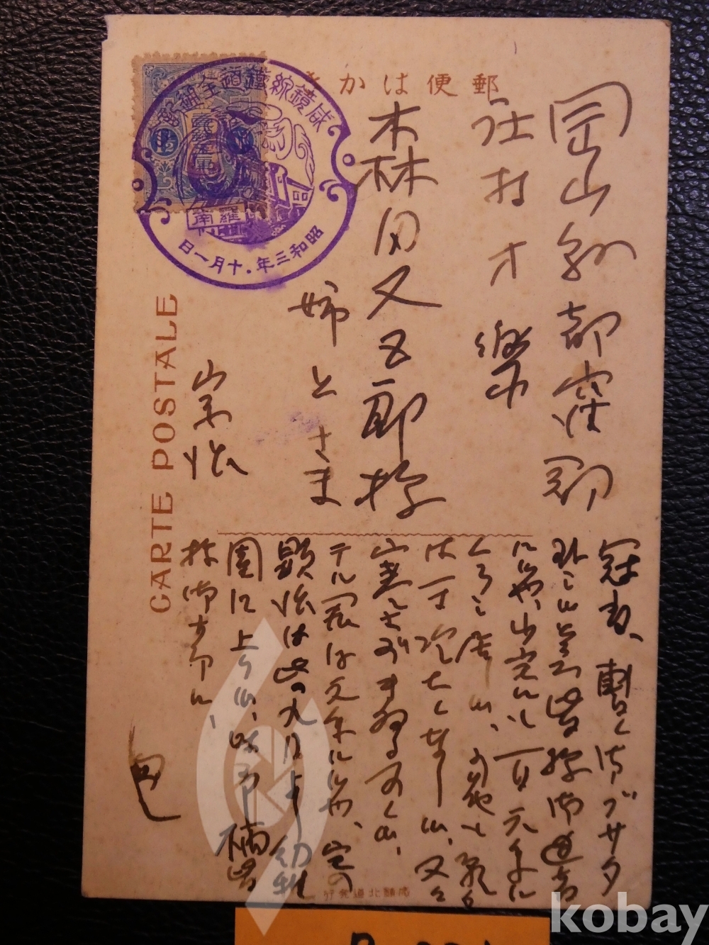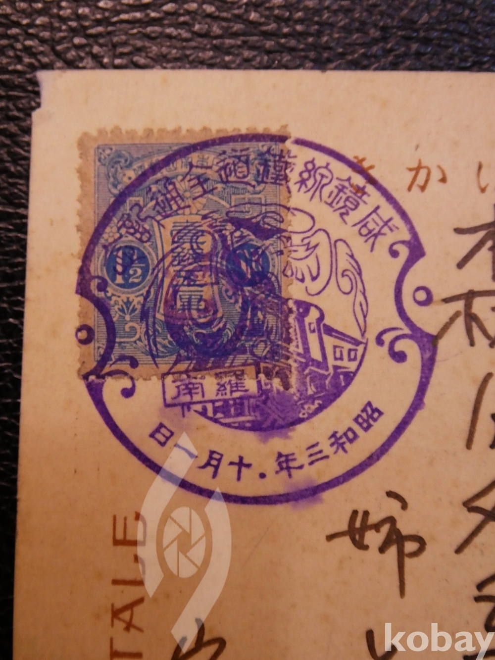 ▣1928년 함경선철도전통 기념인 날인(희귀 특수기념일부인), 사용 실체/1매/매우 희귀/역사 자료/일제강점기 사진엽서,그림엽서,회엽서. B331