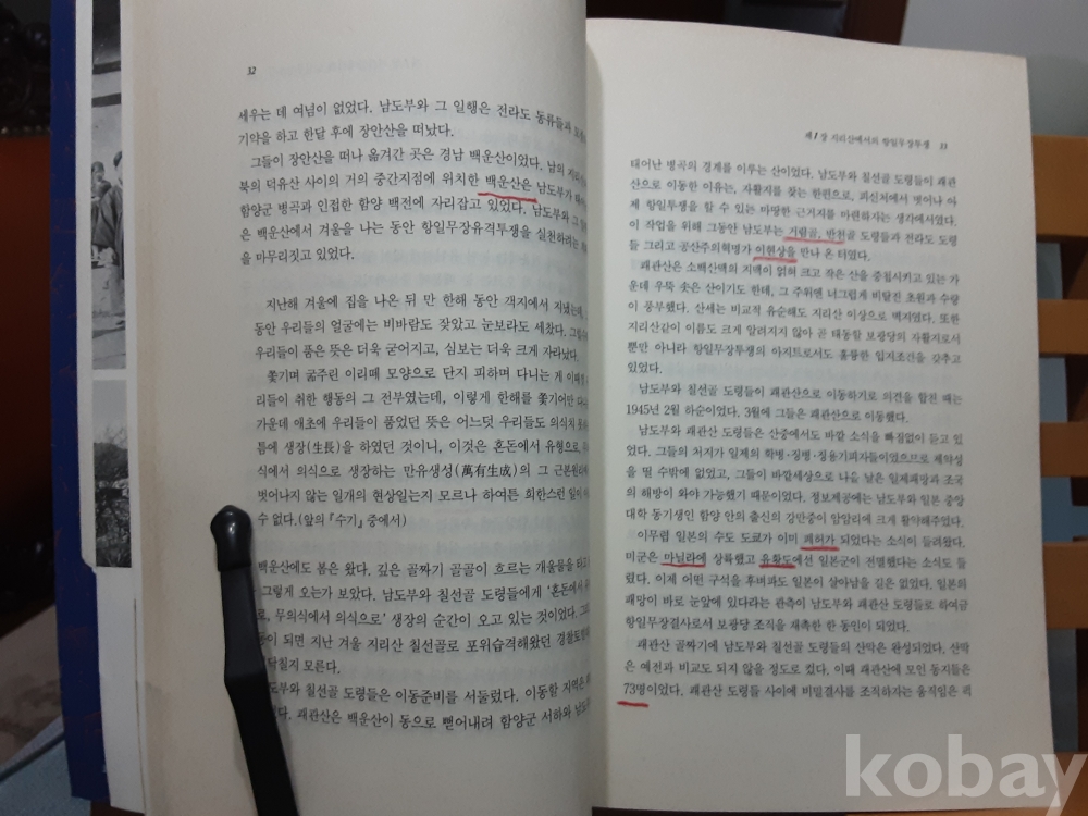 1. 전설적인 남한유격대 총사령관 하준수 일대기. 일제시대부터 지리산에서 시작한 무장유격투쟁을 이끈 남도부 하준수 일대기 (상편). 책에 작은 빨간색연필 밑줄.