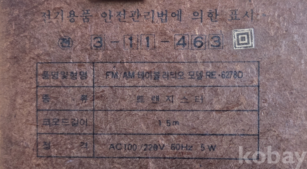 품 명 | 동작하고 상태 좋은 아주 귀한 한국 나쇼날 AM/FM 라디오 ***RE-6278D***(희귀모델) |