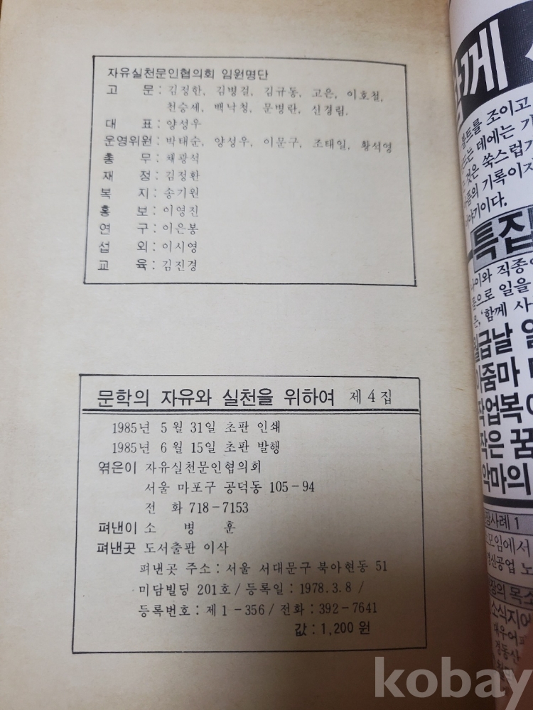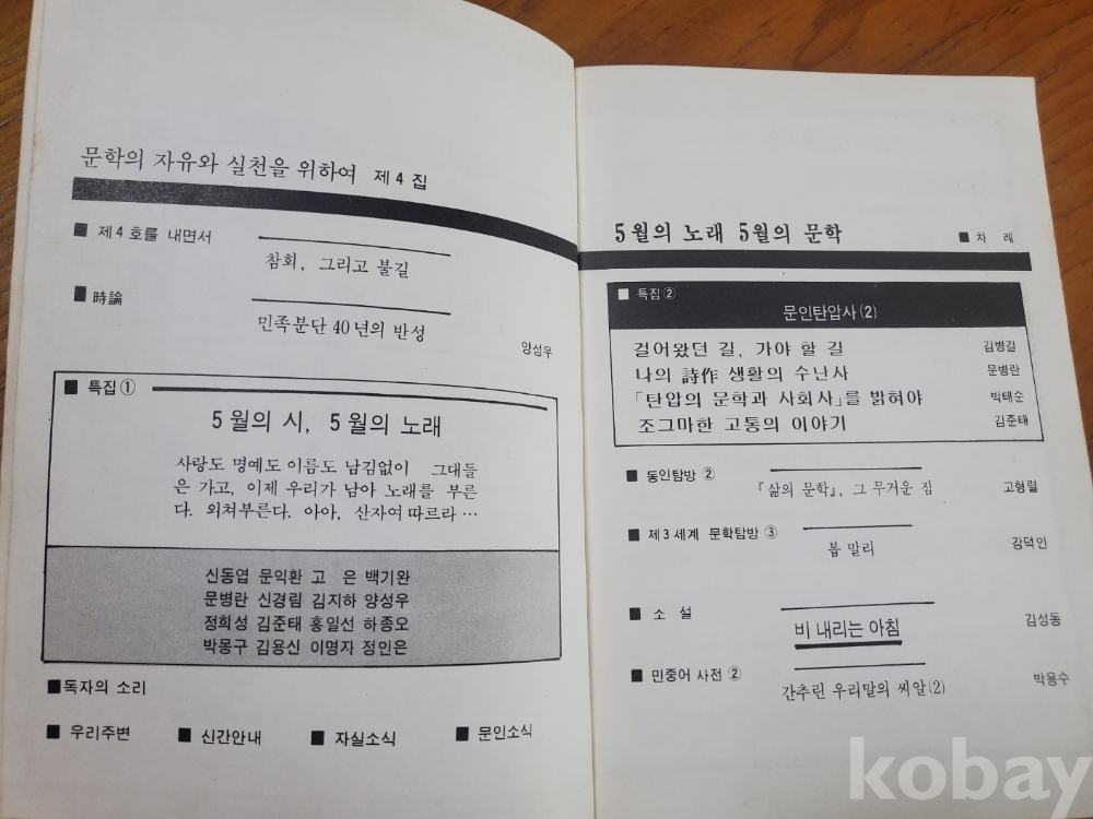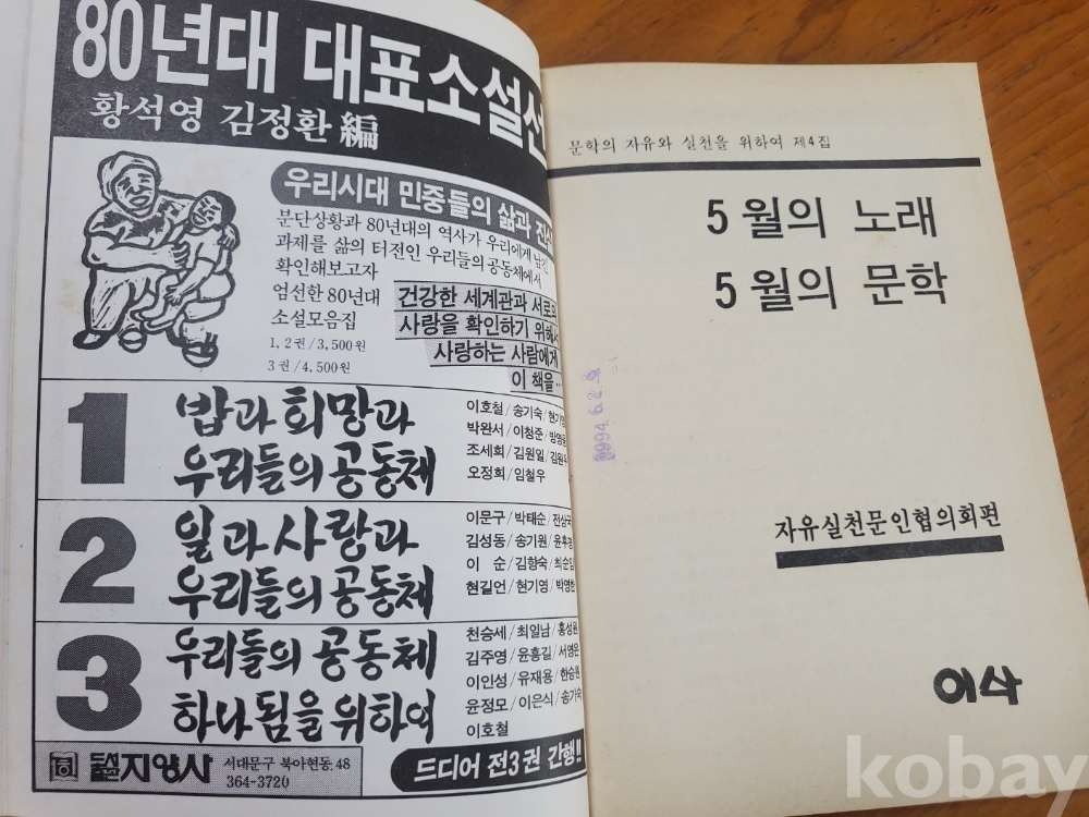 1. 문학의 자유와 실천을 위하여 제4집 - 5월의 노래 5월의 문학, 자유실천문인협회 편, 도서출판 이삭, 1985년, 143쪽, 상태 상(책등 투명 테이핑), 사진 참조