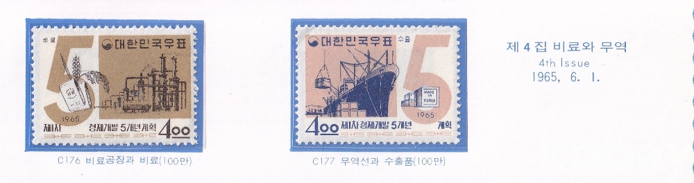 - 한국우표앨범 모음展 - 제1차 경제개발 5개년 계획 특별 우표 - 제4집 비료와 무역 2종(1965년)