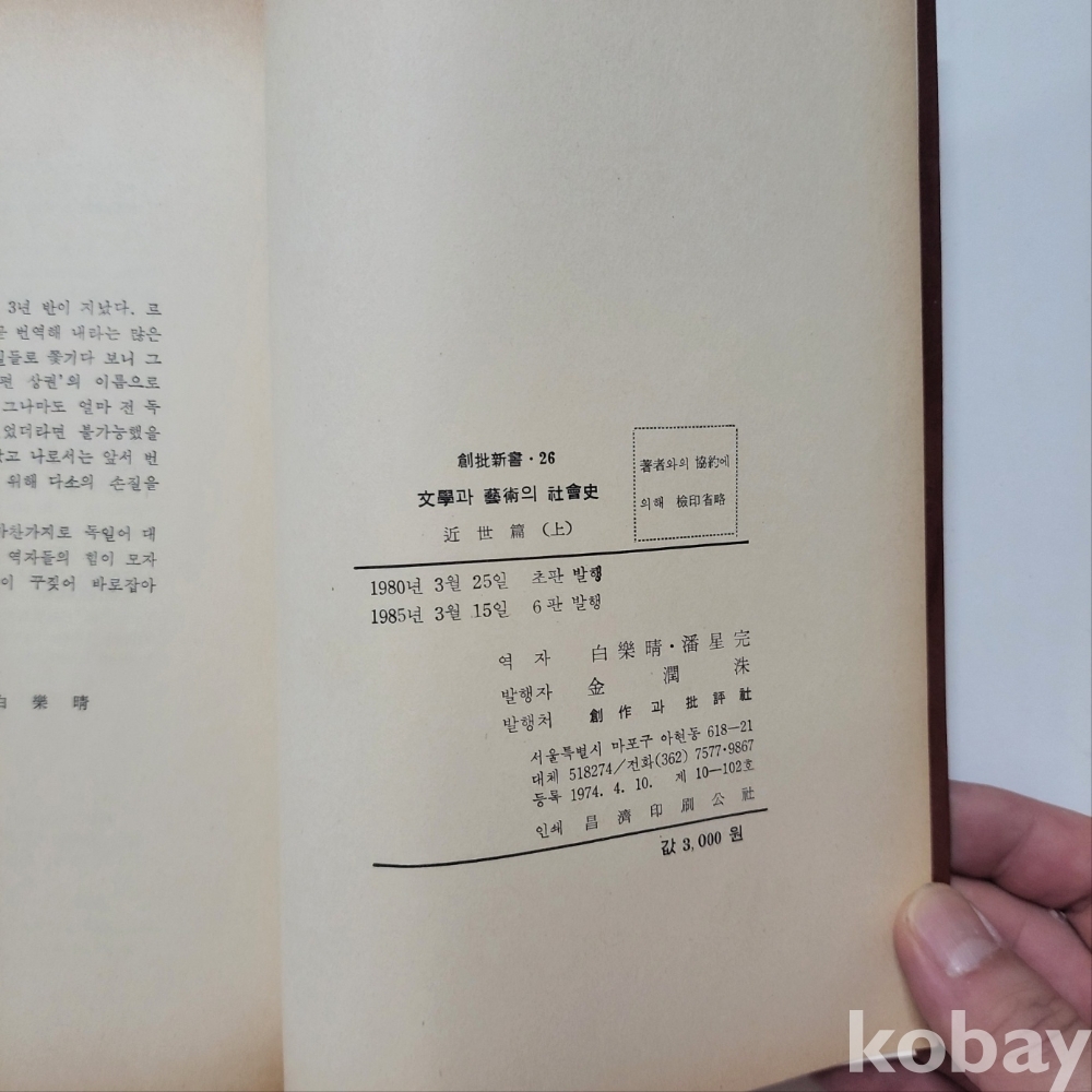[천원경매] 문학과 예술의 사회사 1985년 발행본 ; 중급