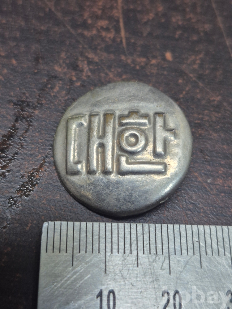 1950년대 대한 이라고 씌어져 있는 뱃찌 1점 재질 백동 OR 알루미늄 으로 추정 2.5*2.5*1