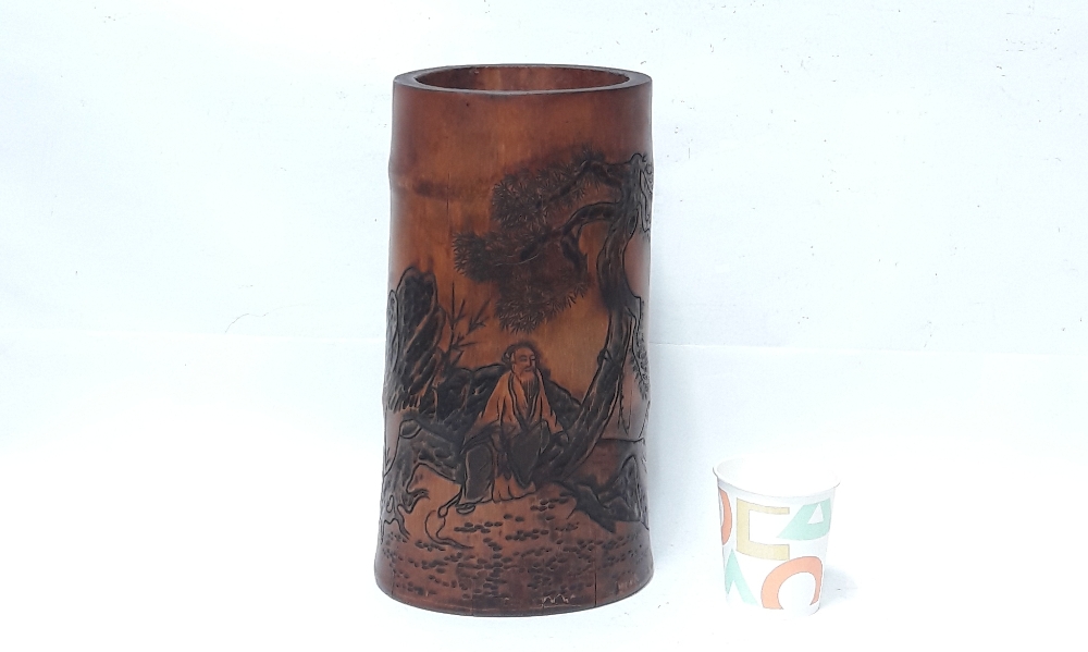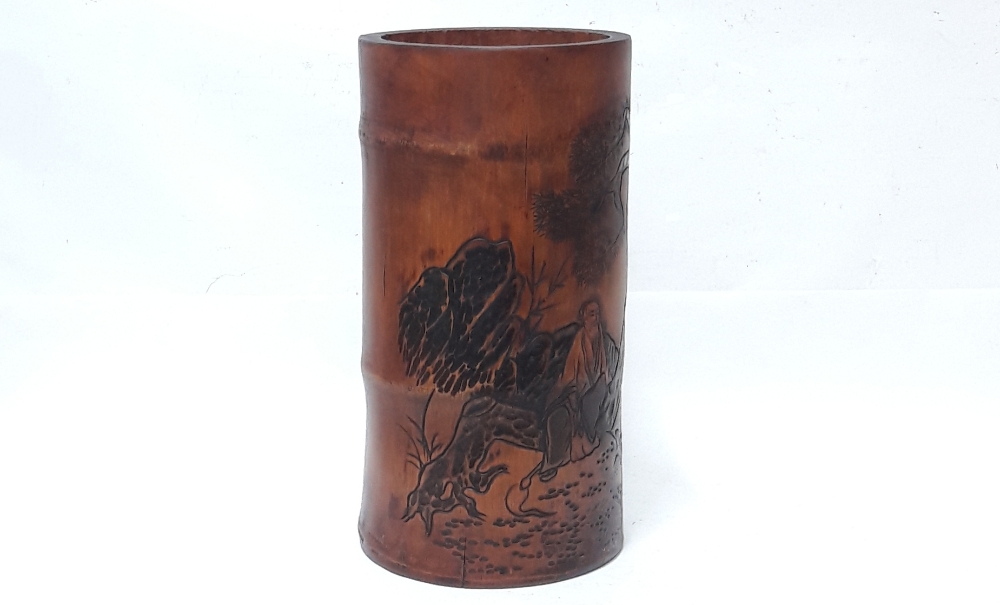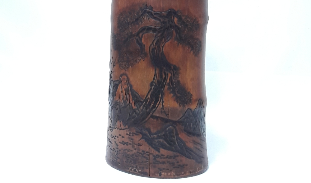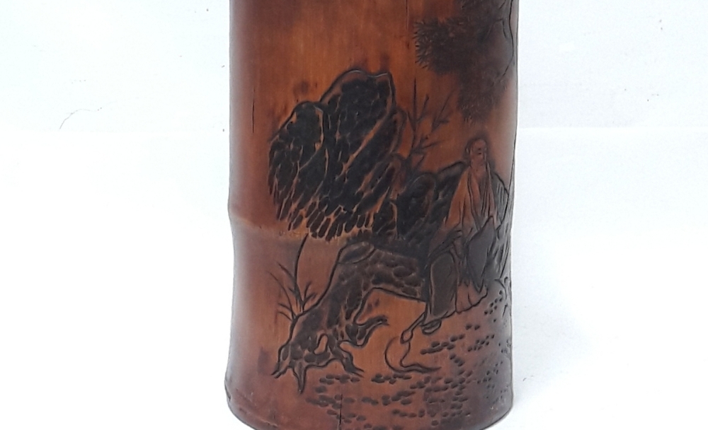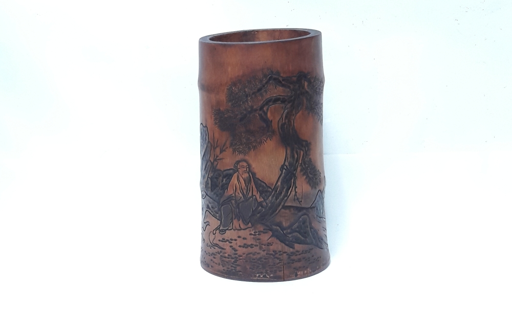 신선도 조각 대나무 필통