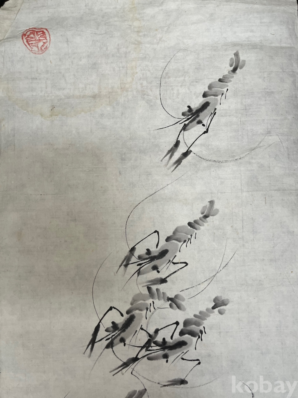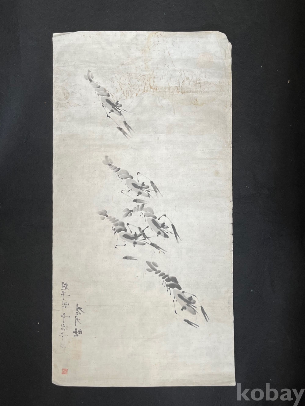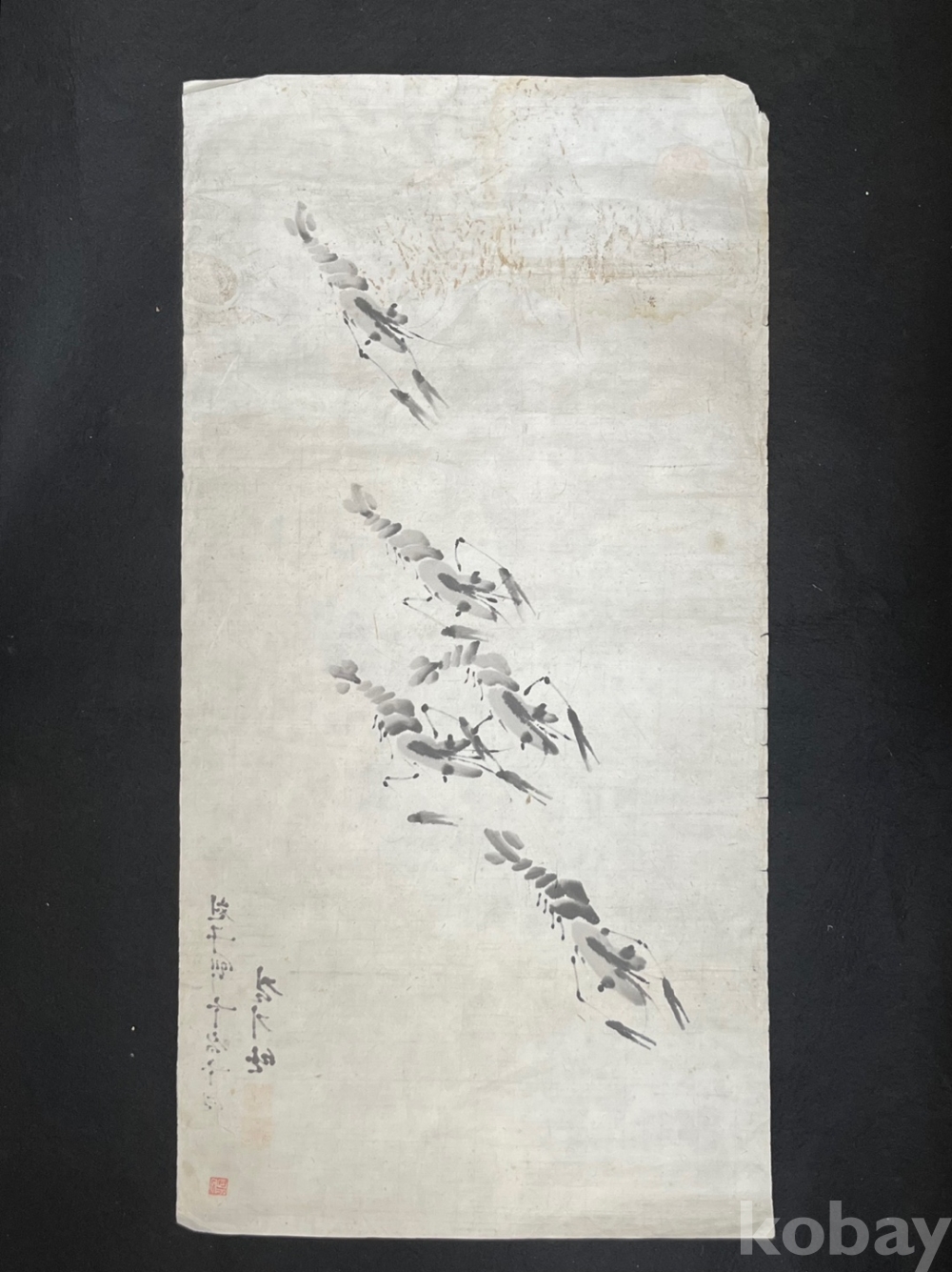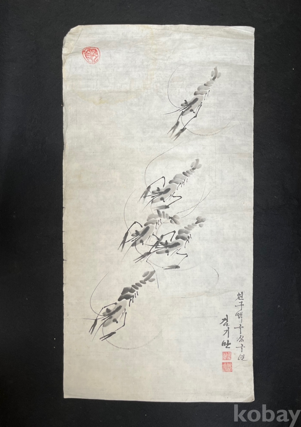 먹의 농담과 간결한 필선으로 그려낸 새우 무리를 담고 있습니다.