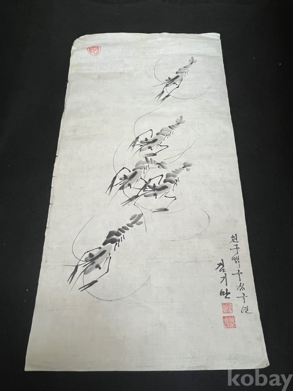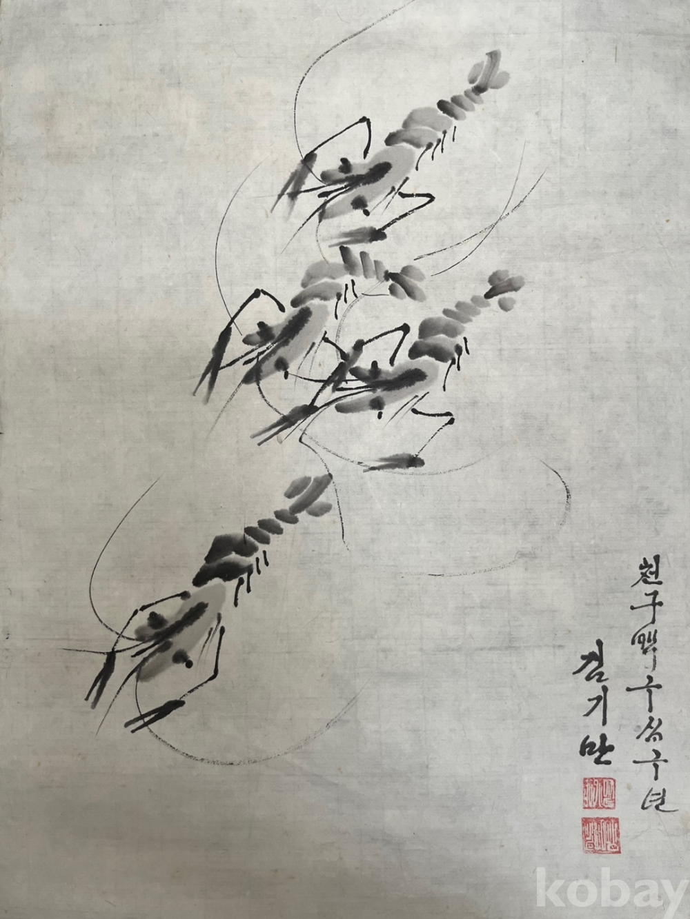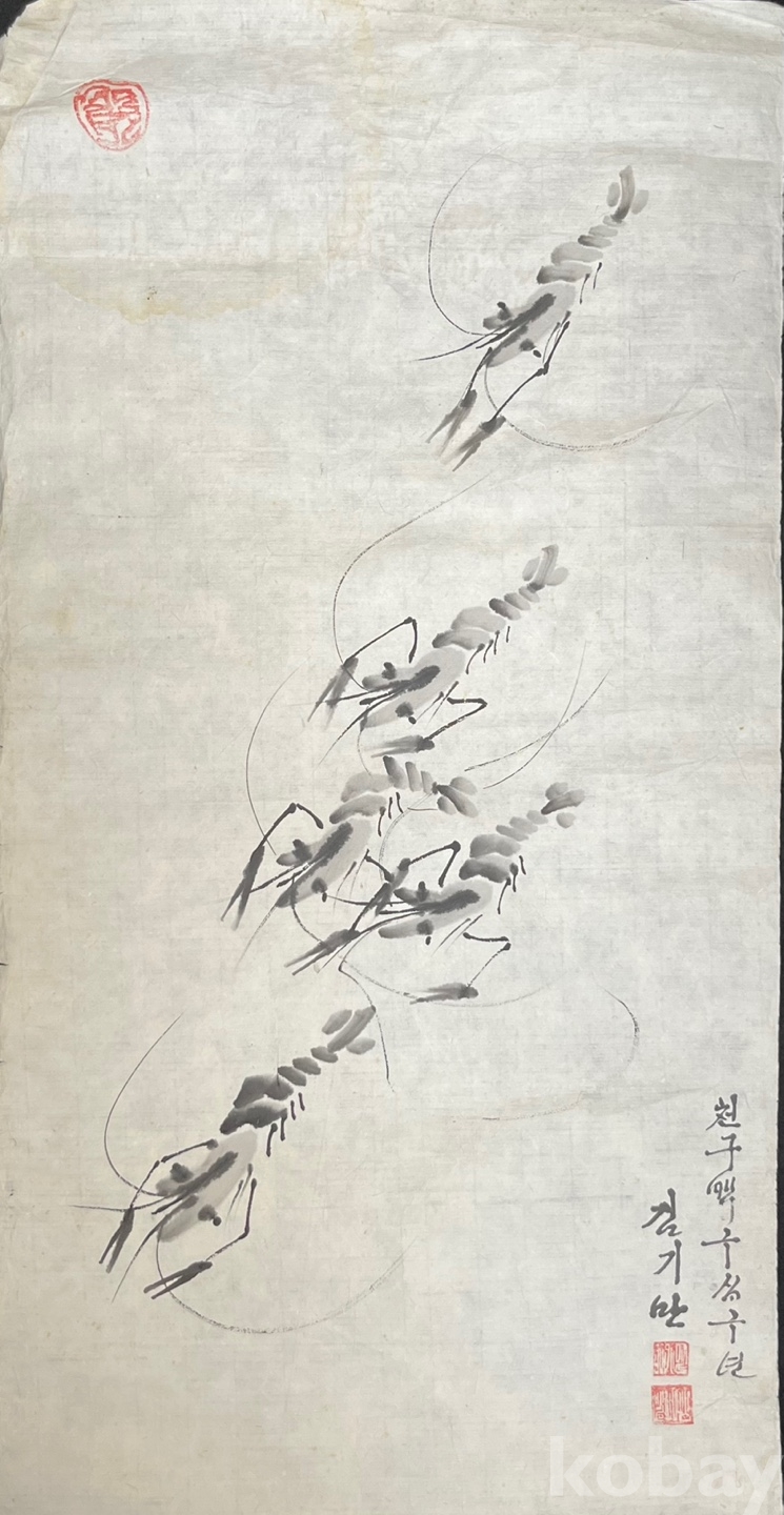 김기만 화백의 붓끝에서 태어난 이 새우들은 사실적이면서도 추상적인 형태를 오가며,