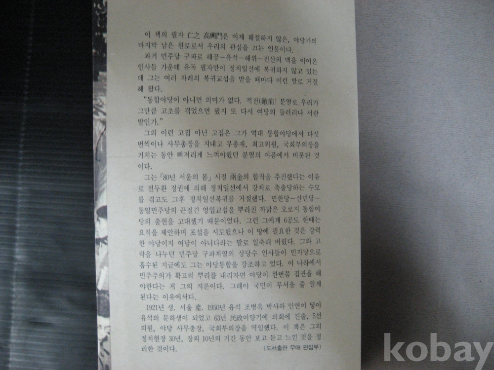 정치현장 40년 못다이룬 민주의 꿈 ,,,고흥문 지음,,,90년