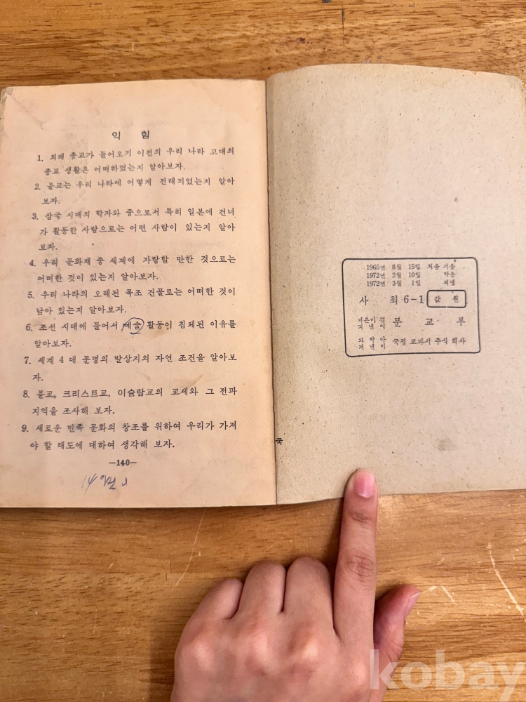 [한국현대사, 사회과교과서] 문교부, <사회 6-1>, 1972, p. 140, 상태 하급(낙서 많음, 사진참조)
