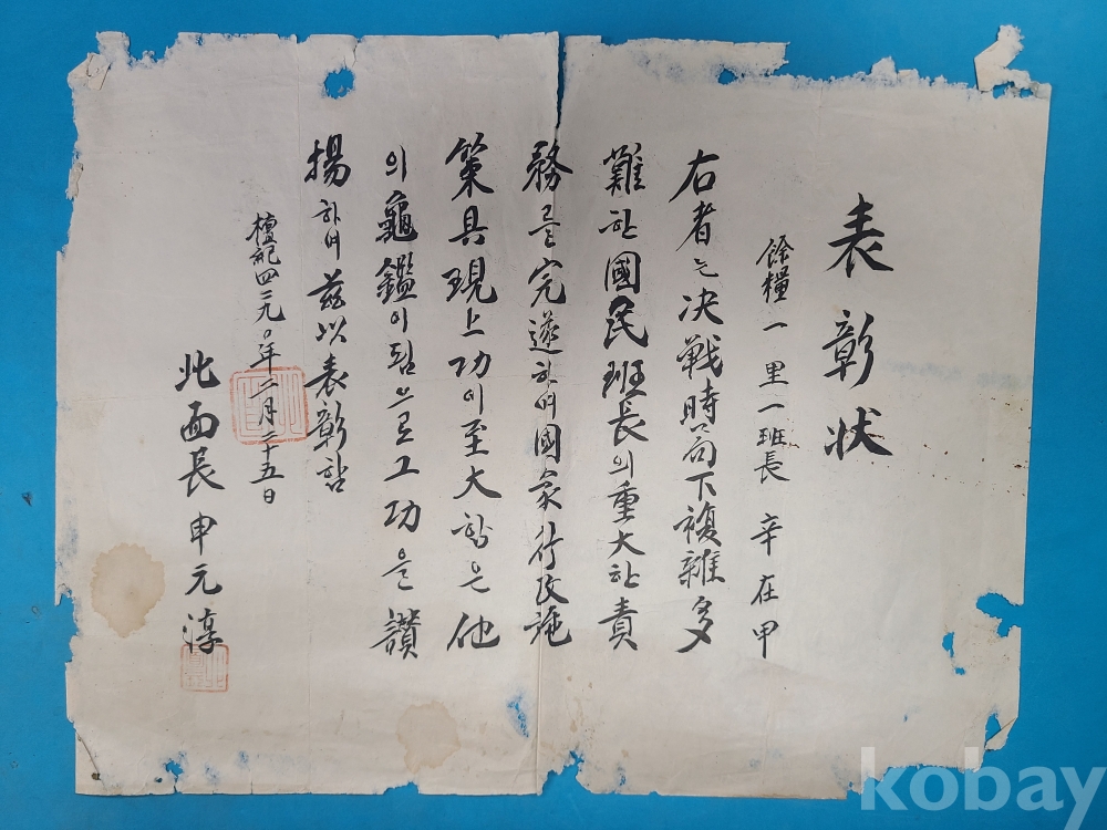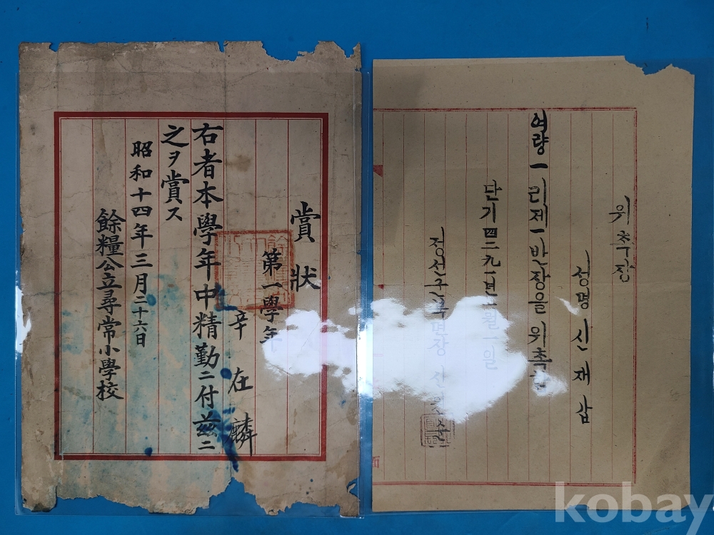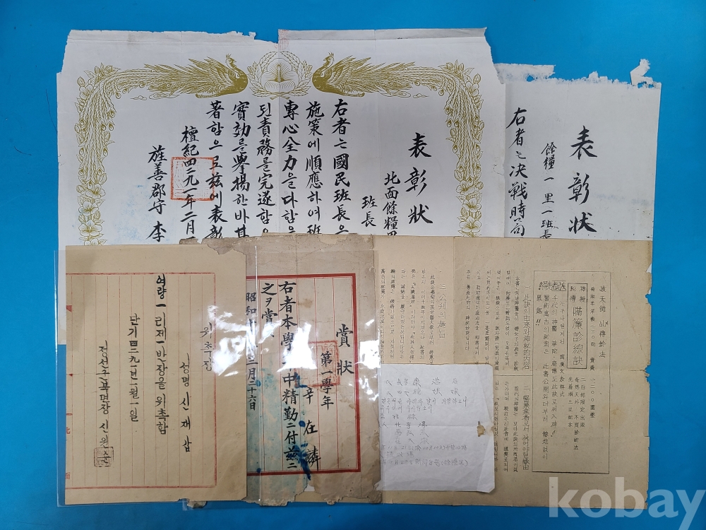**** [일제강점기 포함 정선군 자료 6부] 상장(소화14년 여량공립심상소학교), 반장 위촉장(정선군 북면장), 표창장(1957년 북면장), 표창장(1958년 정선군주), 청접장(1966년), 책 광고자료