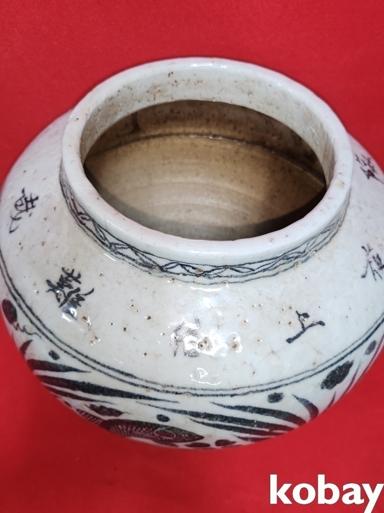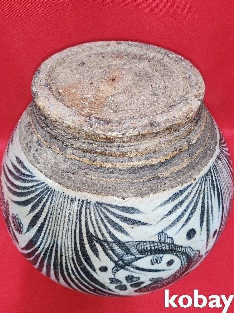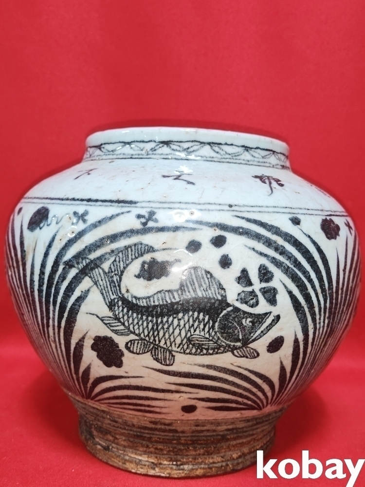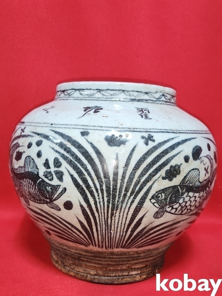 상태는 좋습니다,어깨선에는 한문자가 보이며 4마리의 물고기가 수초와 함께 도안으로 있습니다,