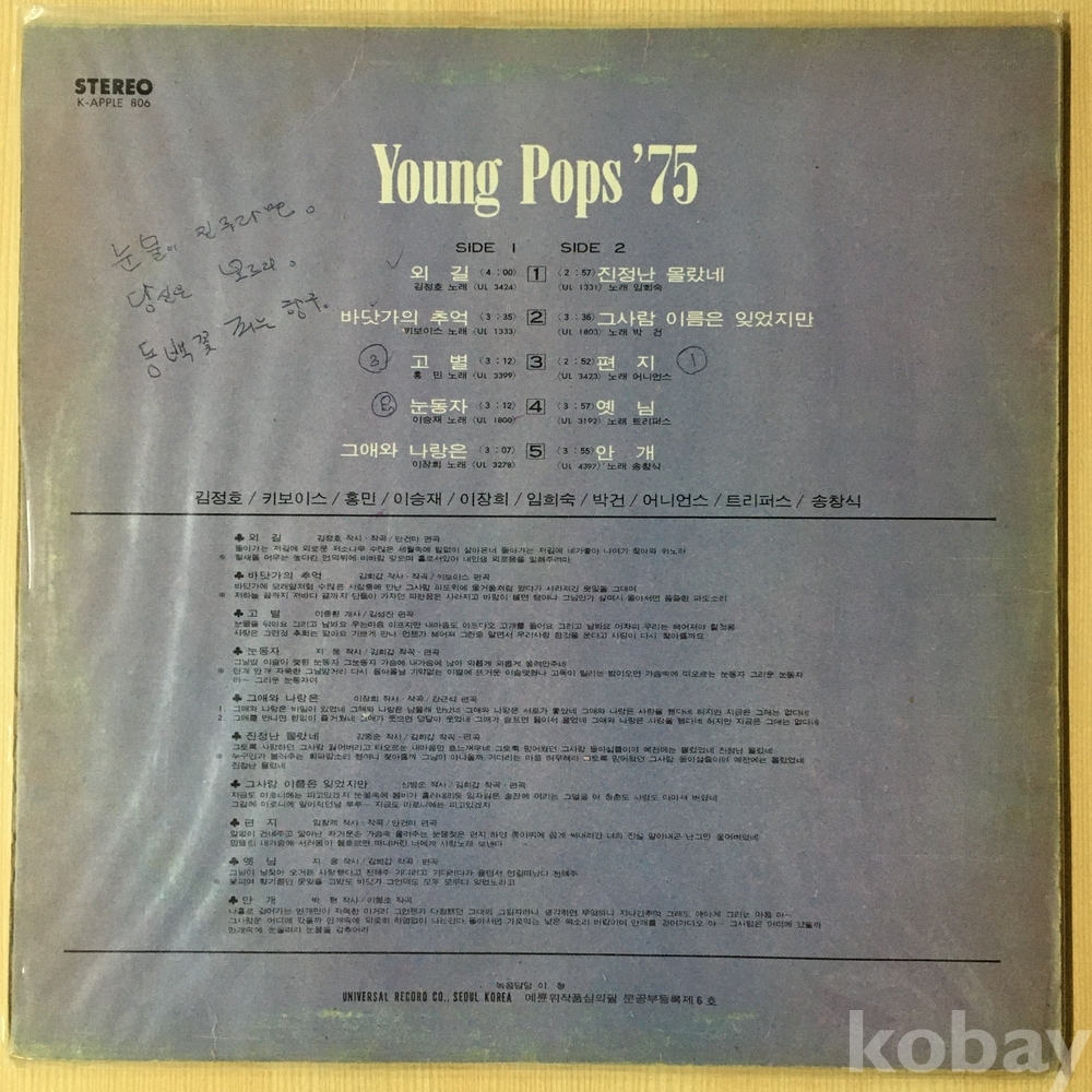 ⊙ 1975년 / 유니버살레코드- K-APPLE-806