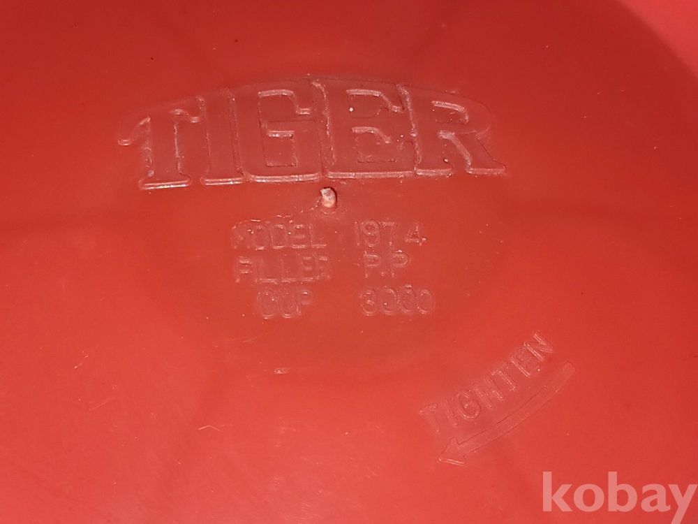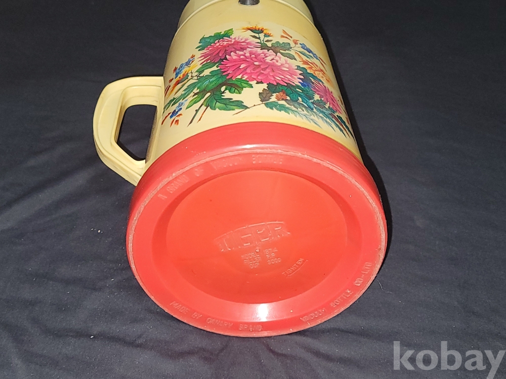 빈티지 세월 감이 느껴지는 1974년 모델 추억의 타이거 꽃가라(꽃무늬) 마호병(보온병)입니다.