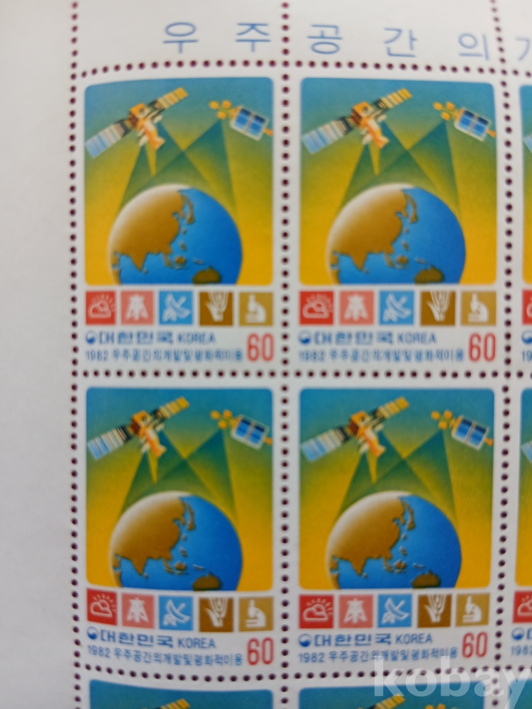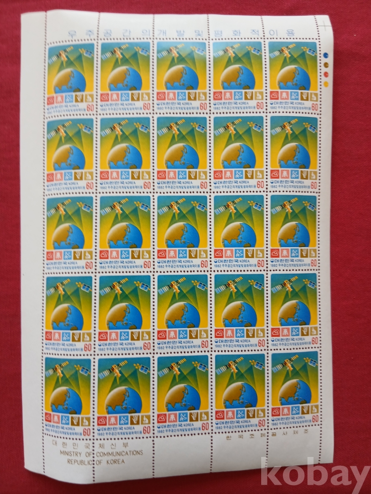우표: 우주 공간의 개발및 평화적 이용 우표 전지 (1982년 액면가 1500원)------미사용으로 상태 아주 양호 합니다