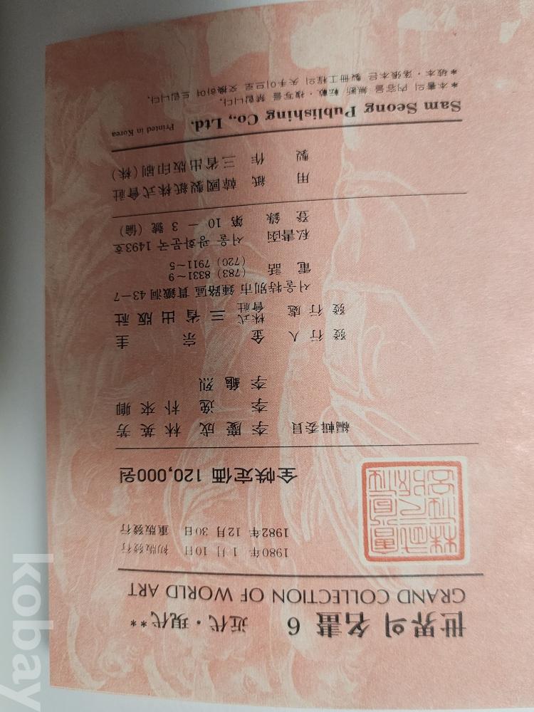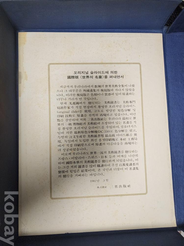 1982년 중판 세계의 명화 6권입니다. 세월의 흔적이 조금 있고 당시의 권당 12만원의 고가로 책정된 도서입니다.(북케이스포함)