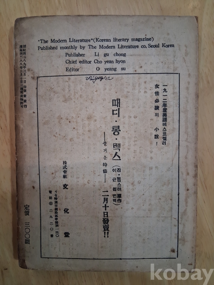 『현대문학』3월호, 현대문학사, 1956.3.1, 상태 좋음.