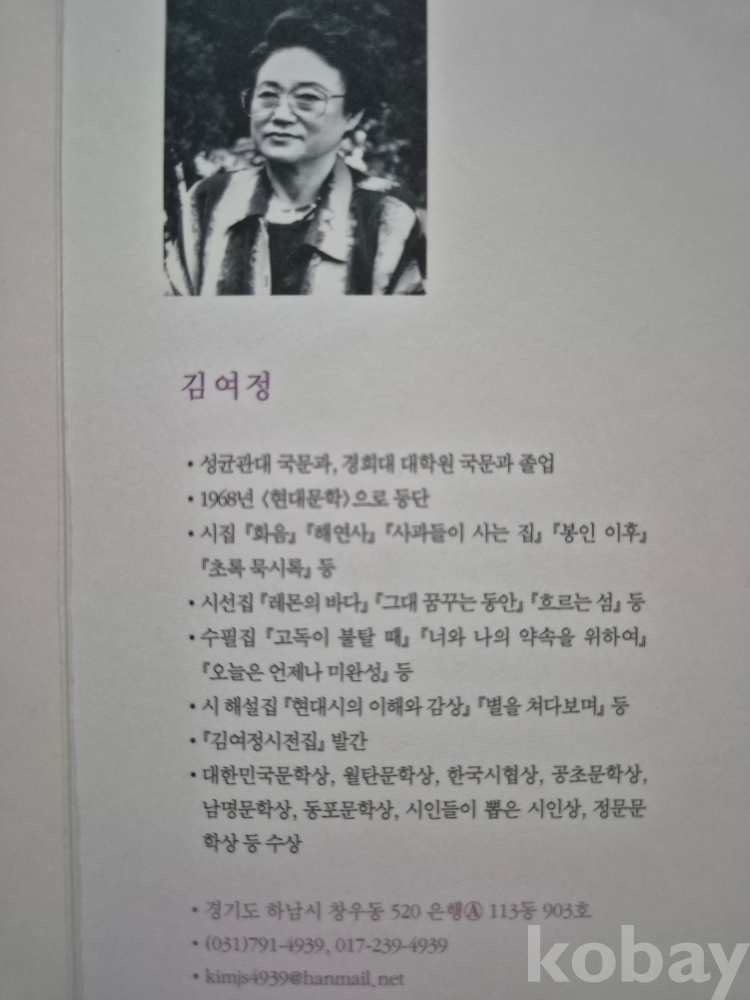 김여정(경상남도 진주: 1933~2024) 저자서명 시집.
