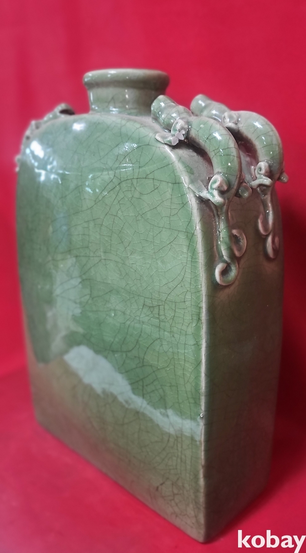 어깨선에 4마리의 도룡용이 양각으로 첩화된 기물입니다,