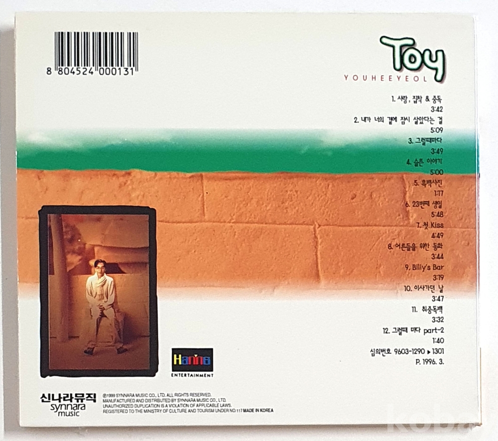 물 품 명 | 토이 TOY 2집 정규 앨범 YOUHEEYEOL / 내가 너의 곁에 잠시 살았다는 걸 , 사랑 , 집착 / 1996년 |