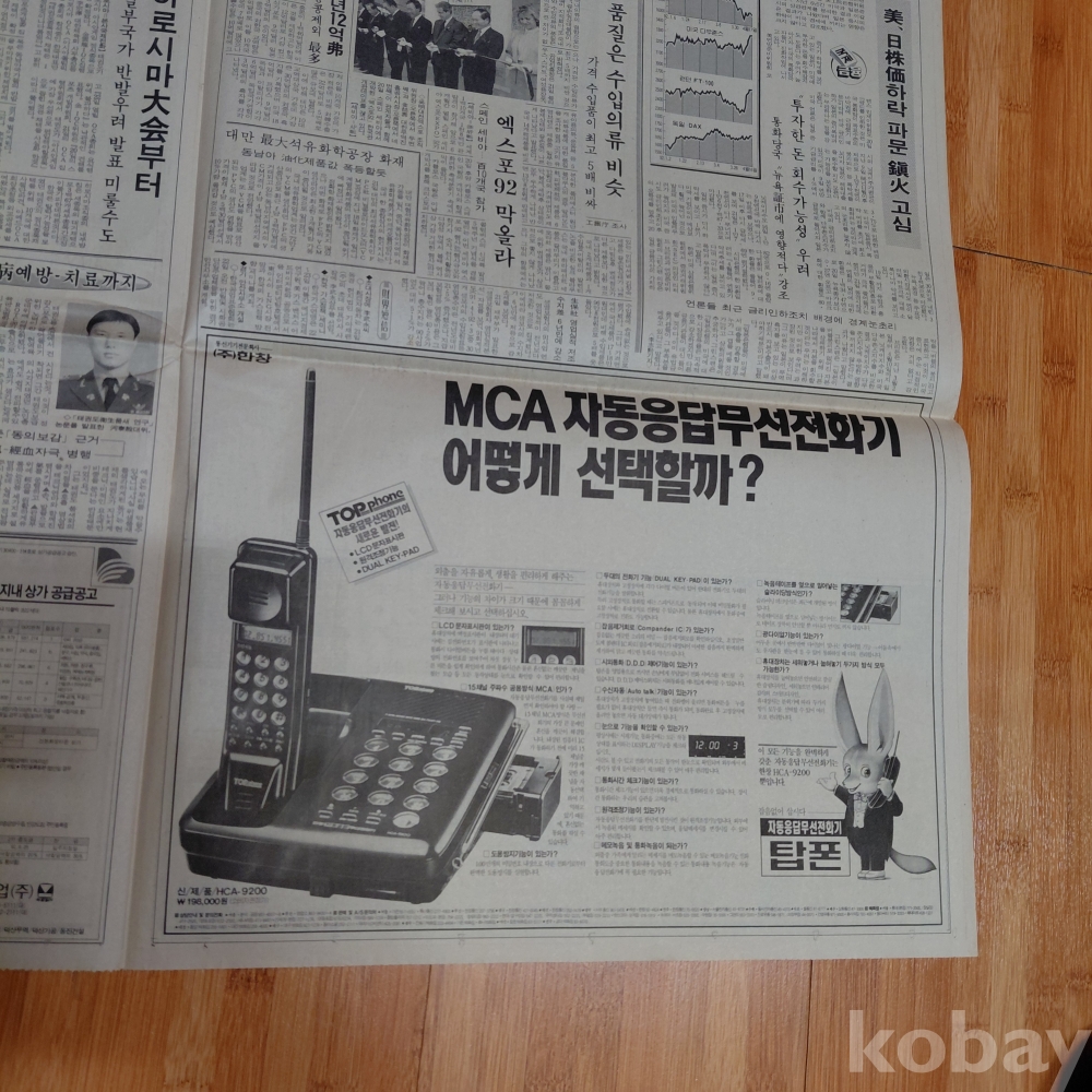 한창탑폰 자동응답 무선전화기 광고 조선일보 92년4월22일 올려드립니다