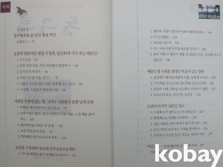 다큐멘터리 방송작가인 작가는 머리말에서 실패한 역사의 부끄러운 이야기도 함께 보아야 "오늘이 제대로 보인다"고 하였으며, 프롤로그인 '동구릉으로 온 다섯 왕의 비밀'에서 '조선을 이해하는 중요한 코드' 3가지로 조선의 건국, 장자상속의 원칙, 왕권과 신권의 물리고 물리는 대립을 들었다. 이 3코드가 집합돼서 나타난 왕들로 태조, 문종, 선조, 현종, 영조를 꼽았고 이들이 공통점이 바로 이들 모두가 동구릉에 묻혔다고 하였다.