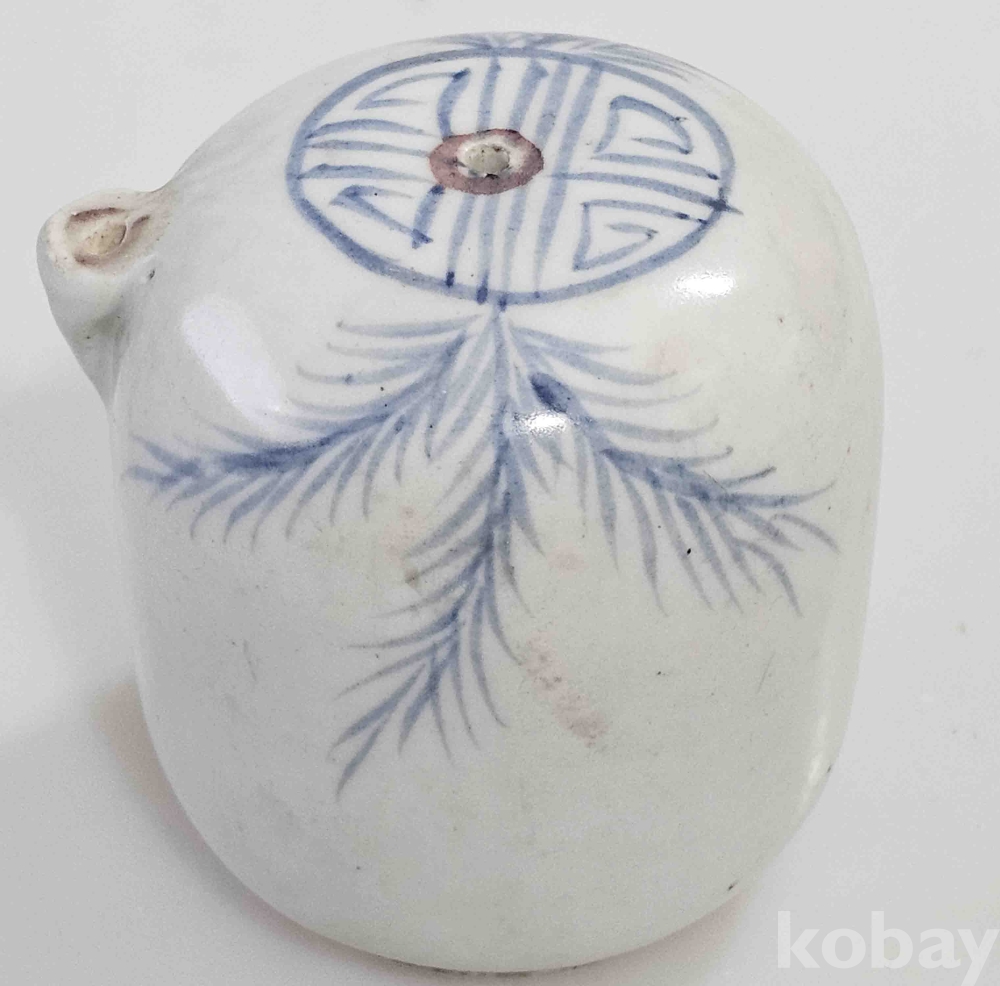 @상태: 연대감 좋은 연적06 철화청화백자 수자문 무릎연적입니다.