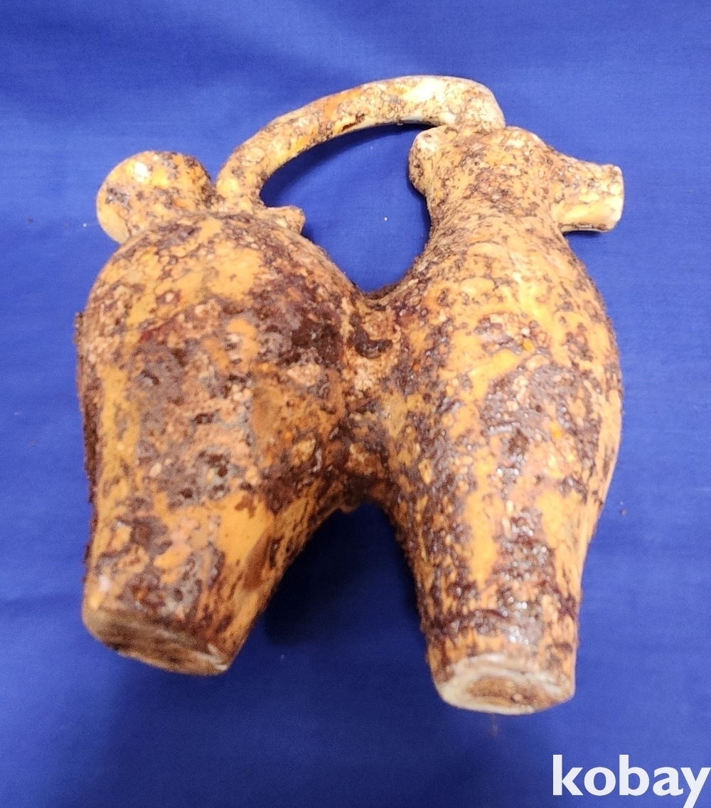 연대좋은 백자 동물형상 병에 철분이 가득 붙어있는 기물입니다,