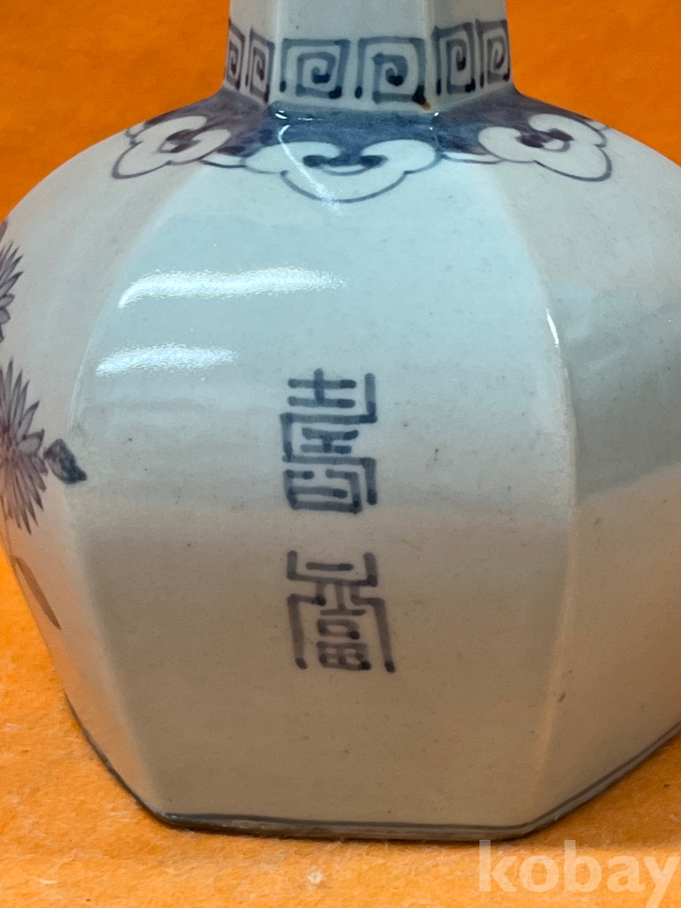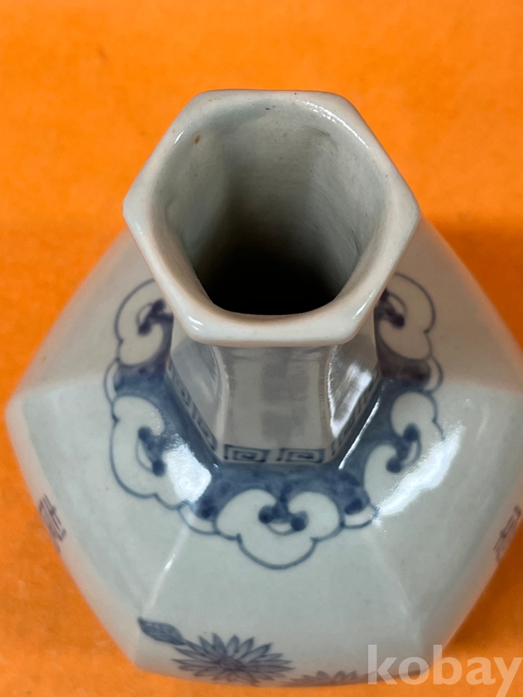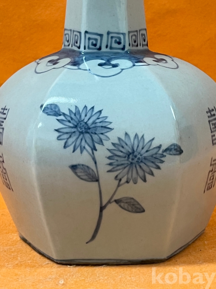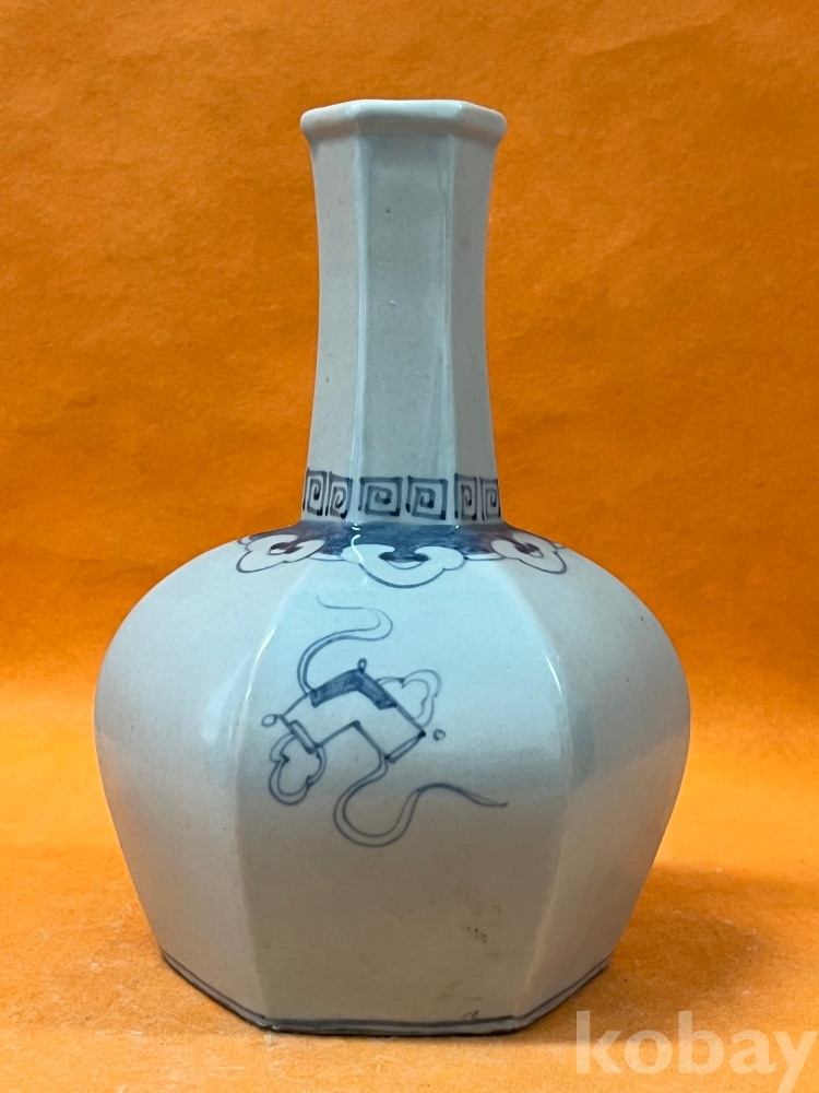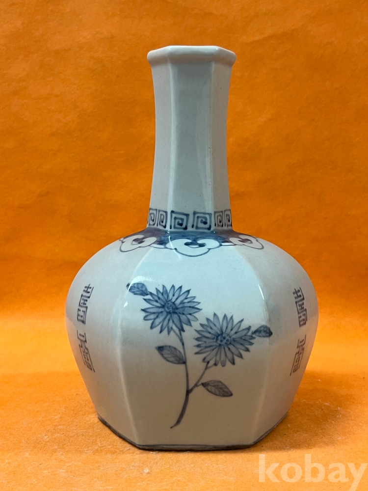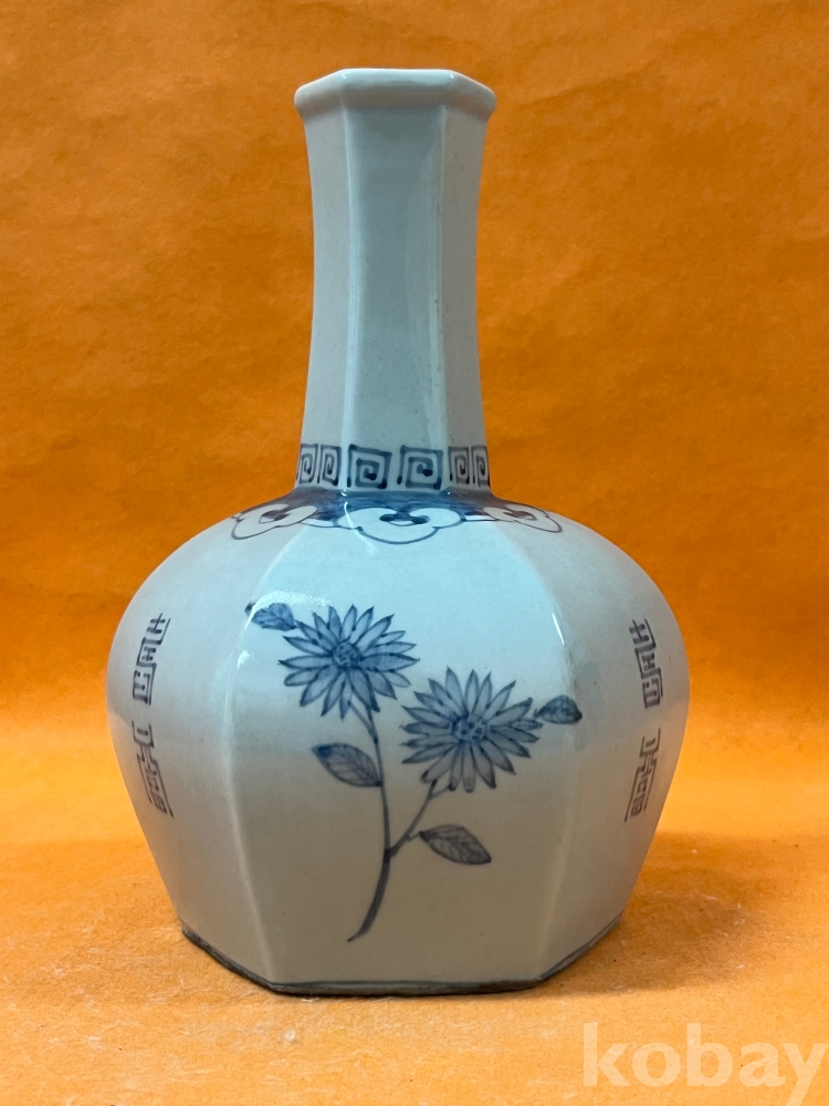 이 작품은 조선 말에 제작된 청화백자 팔각병으로,