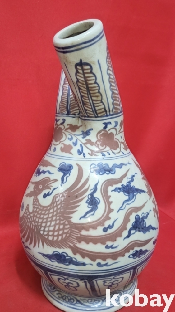 대원국 지정12년제 관지 청화 유리홍 운용문 쌍구(雙口)병입니다,