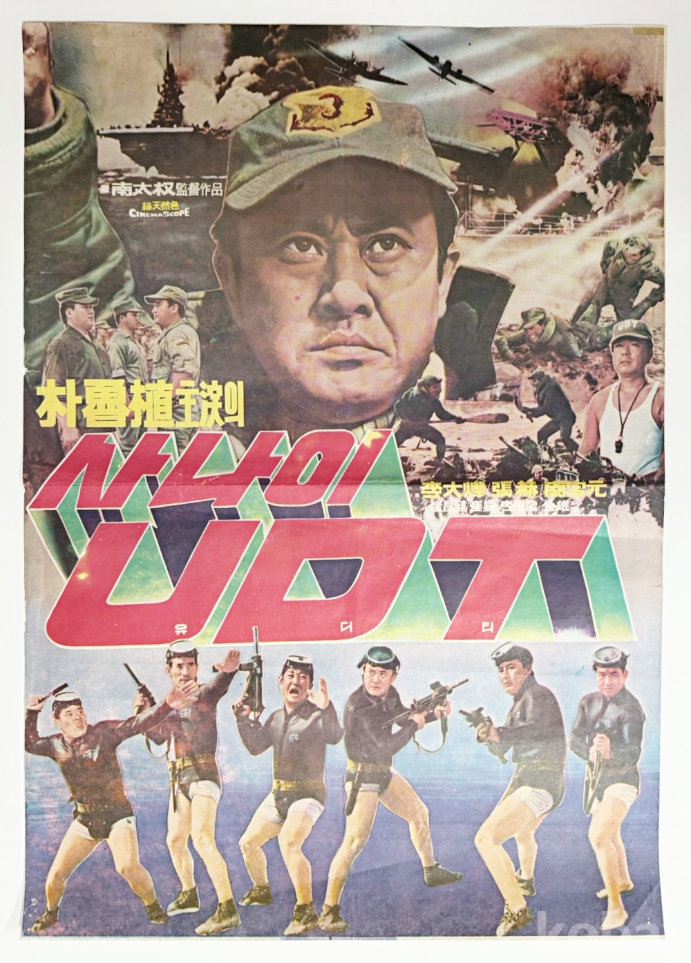 상품 설명 | 1969년 개봉한 영화 '사나이 유디티(UDT)' 포스터이다. 영화 방영 이후 주제가인 '사나이 UDT'가 해군 UDT의 대표적인 군가로 자리잡게 되었다. | ||